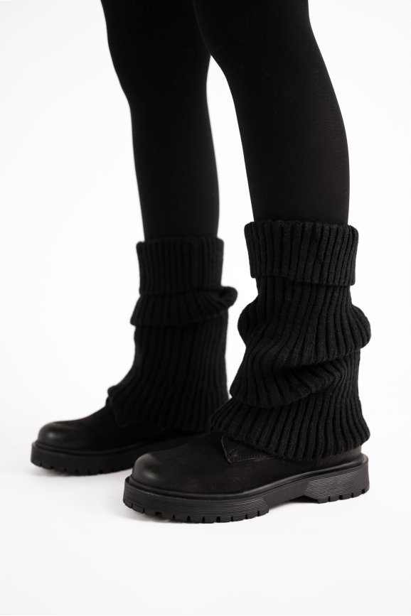 Длинные зимние гетры с ребристым плетением и декоративным отворотом – практичный и модный аксессуар для холодных дней.