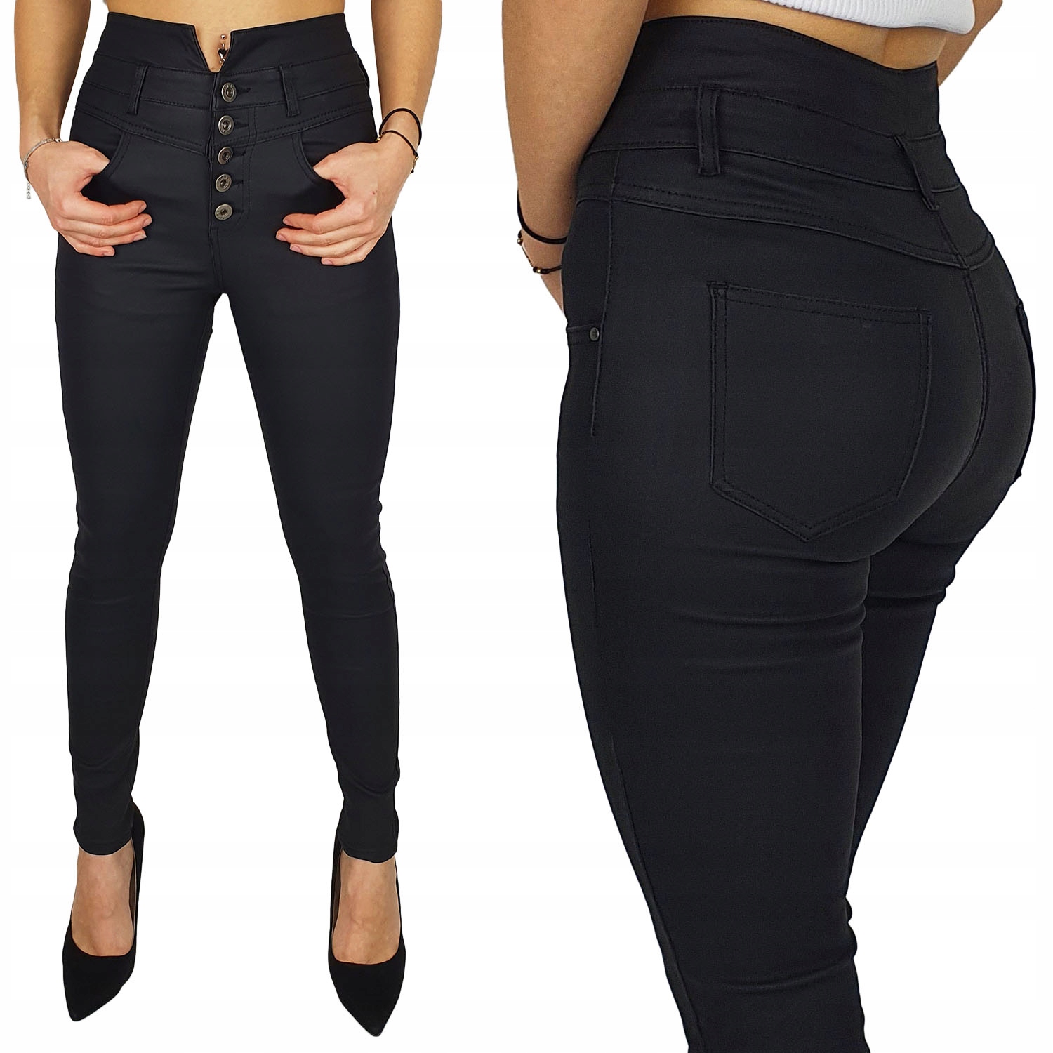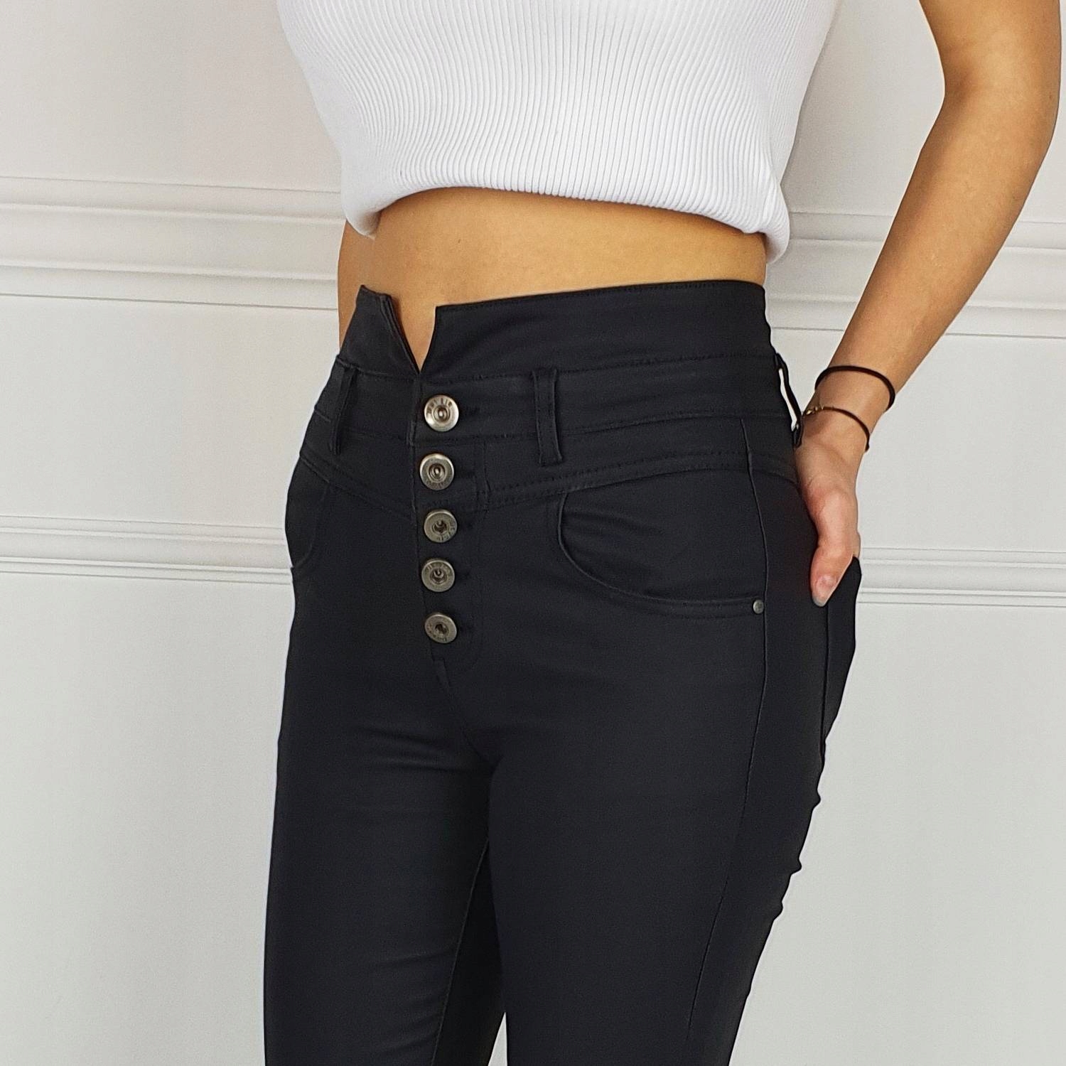 Черные матовые вощеные брюки, высокая талия. Отлично подходит для спортивную обувь, но они также идеальны в сочетании с обувью на высоком каблуке, благодаря своей универсальности подходят практически к любому стилю. Гибкий материал подчеркивает женскую фигуру. Брюки приталенные и тянутся. Подчеркните свои женственные формы! Сделайте свой повседневный образ уникальным. Брюки имеют карманы с обеих сторон.