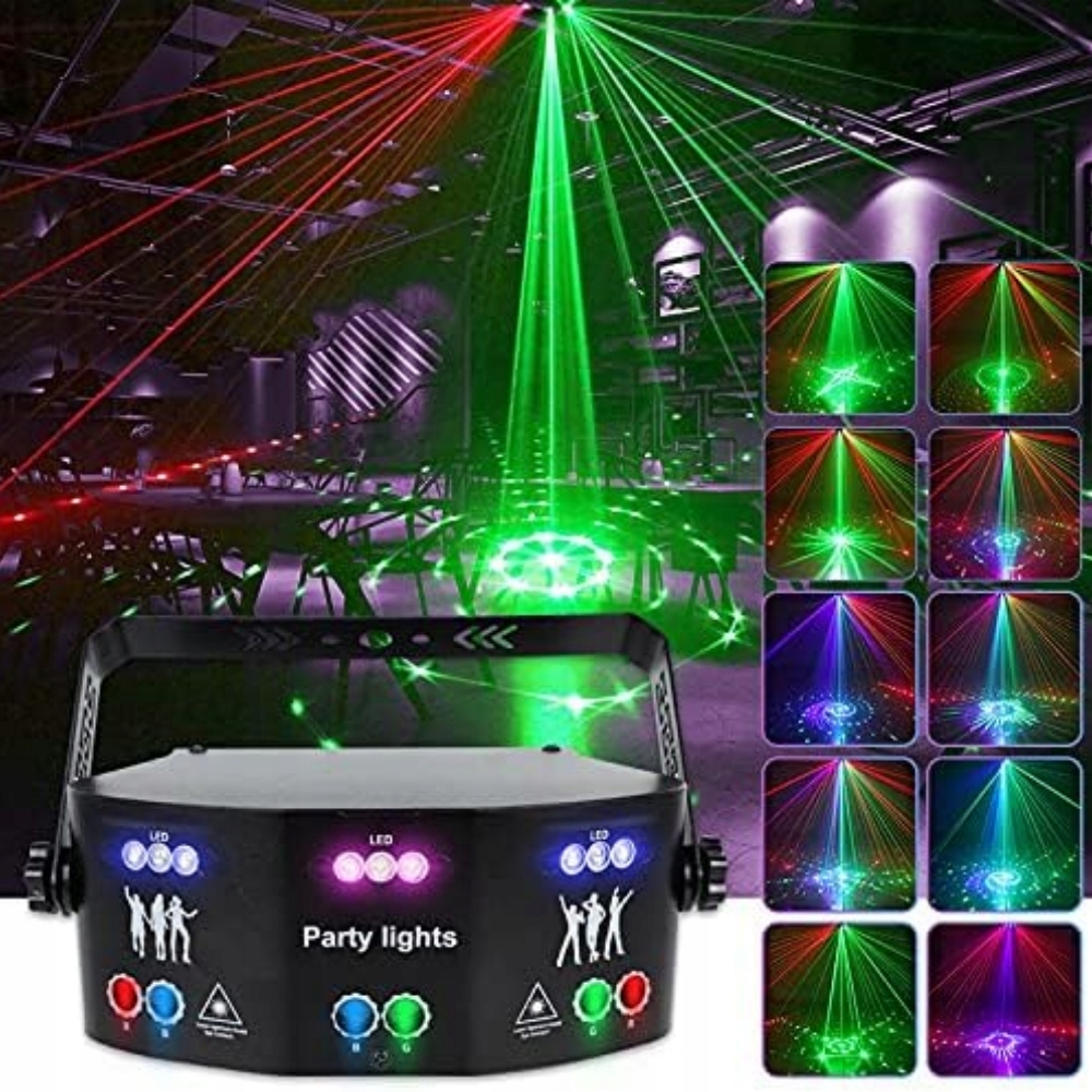 Огни дискотеки имеют более широкую широкоугольную панорамную вспышку, сочетают красные, синие, зеленые лучи и цветной фон RGB для достижения 125 любимых световых эффектов и создания более прекрасной атмосферы вечеринки. Определенно лучший выбор для подарков и развлечений.