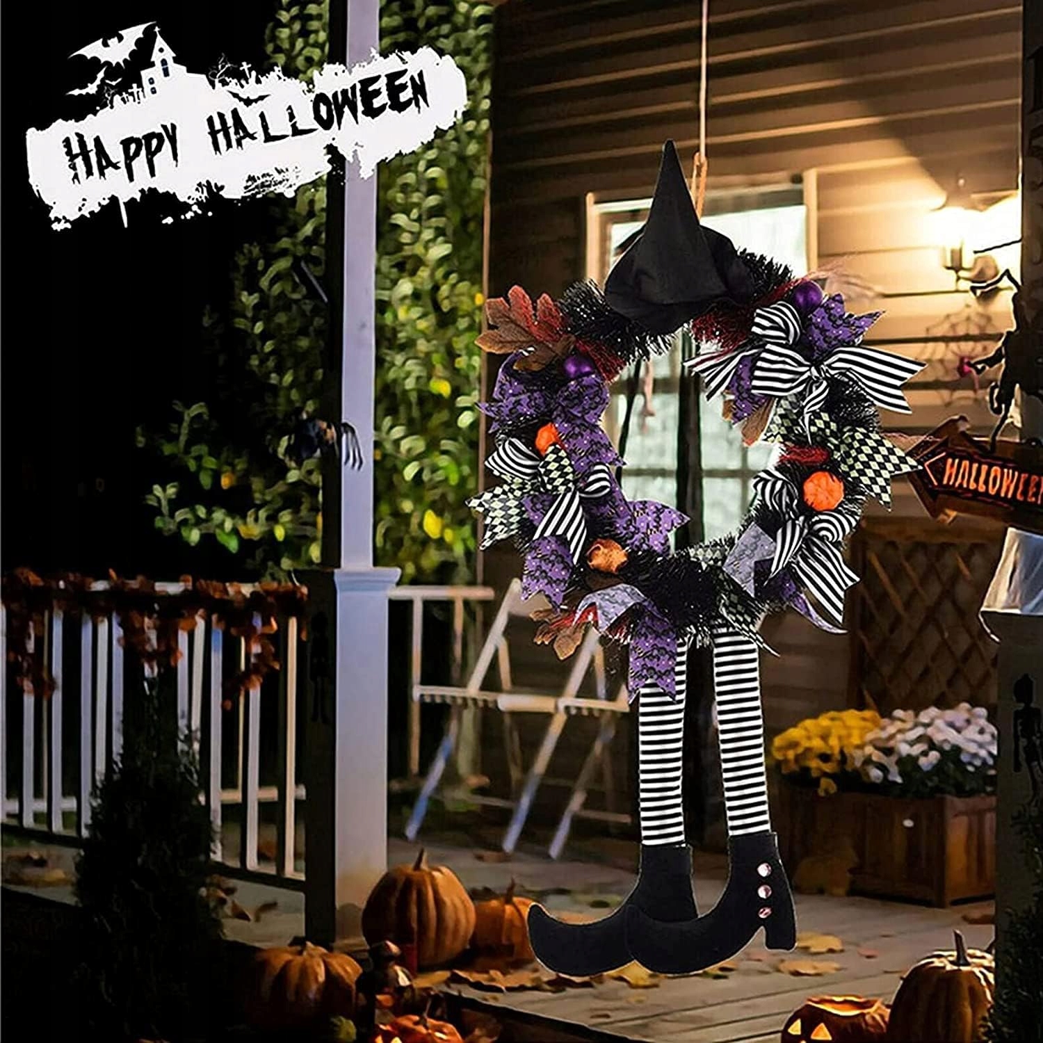 ЧОРНИЙ ХЕЛЛОВІНСЬКИЙ ВІНОК ВІДЬМИ ПРИКЛАДА ДВЕРЕЙ КАПЕЛЮХ НІЖКИ 60см