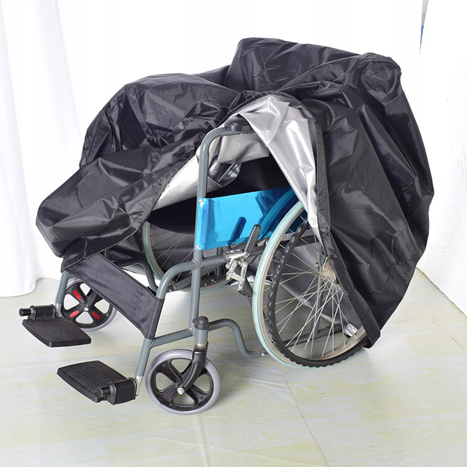 Он выдерживает сильный солнечный свет: пылевой покров инвалидного коляска изготовлен из Оксфорда с серебряным покрытием, который является устойчивой к слезой ткани, он может эффективно защитить скутер от солнечной ванны. Сушка в сухости и защищает инвалидную коляску от пыли, снега, пятен, дождя, солнечного света и т. Д.