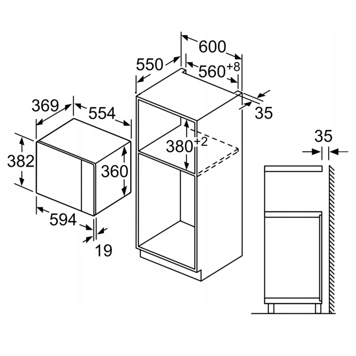- Размеры ниши (ВxШxГ): 380 мм - 382 мм x 560 мм - 568 мм x 550 мм
