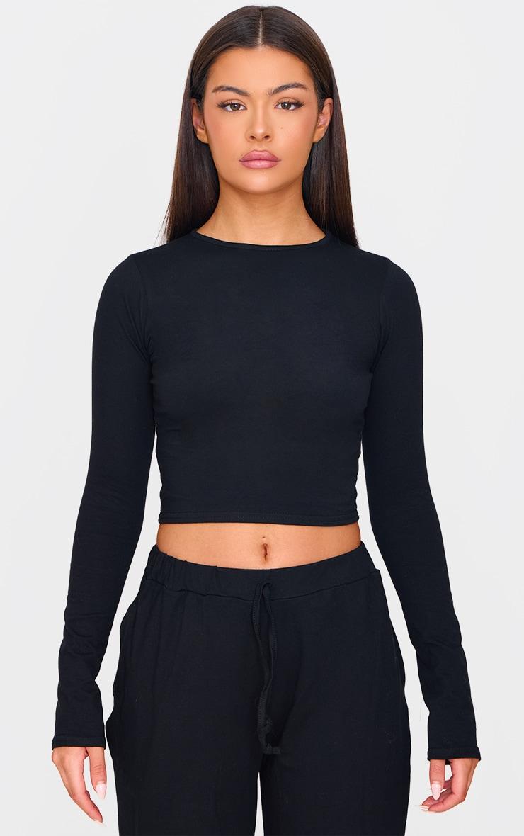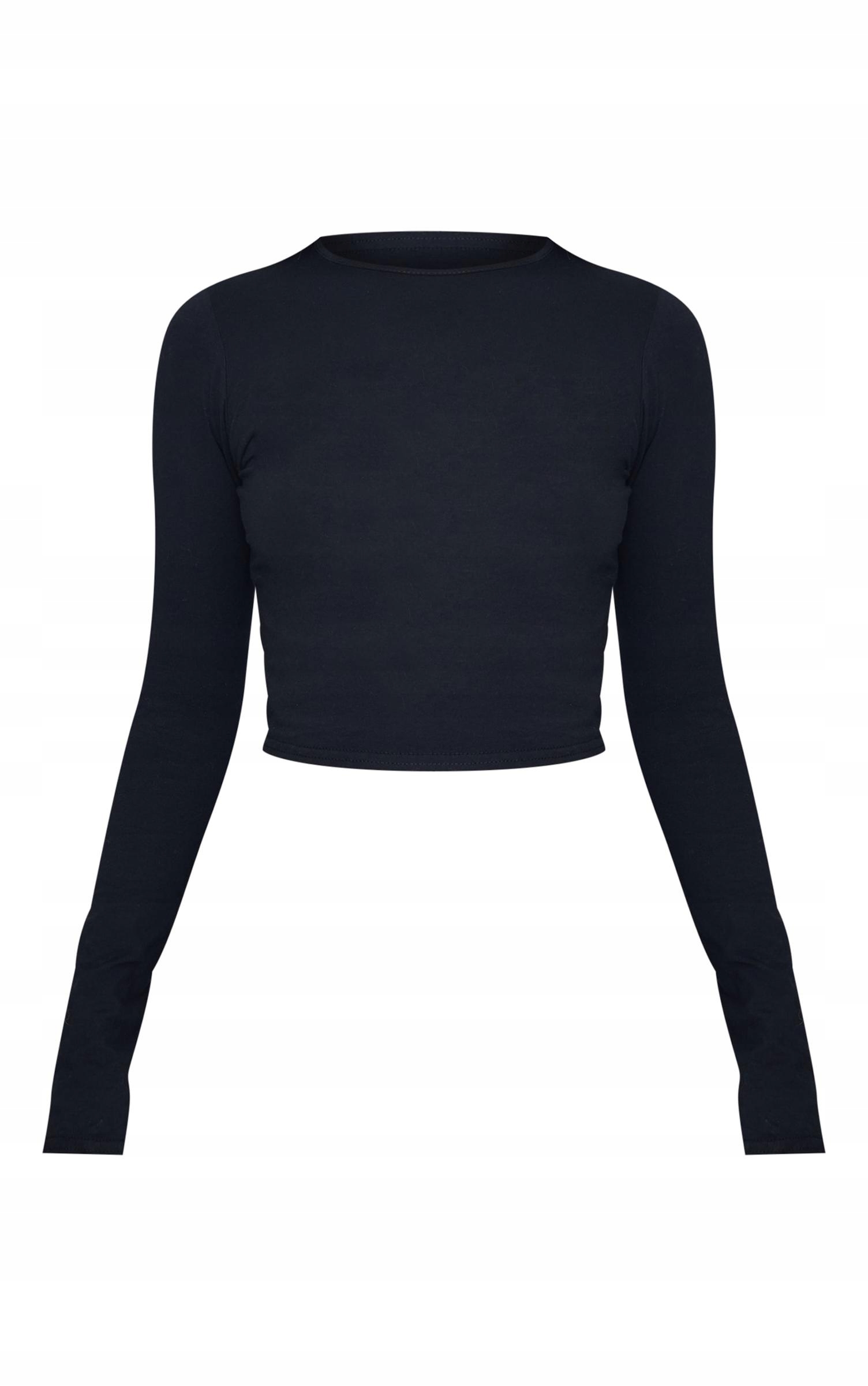 ЧЕРНЫЙ Укороченный топ с длинными рукавами, однотонный хлопок, PRETTYLITTLETHING 40