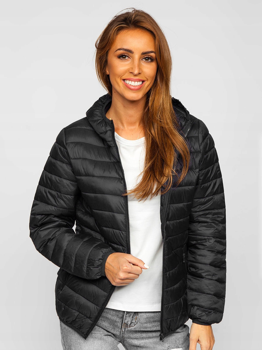 Черная стеганая женская куртка переходного перехода с капюшоном Denley M23036 в размере h1>