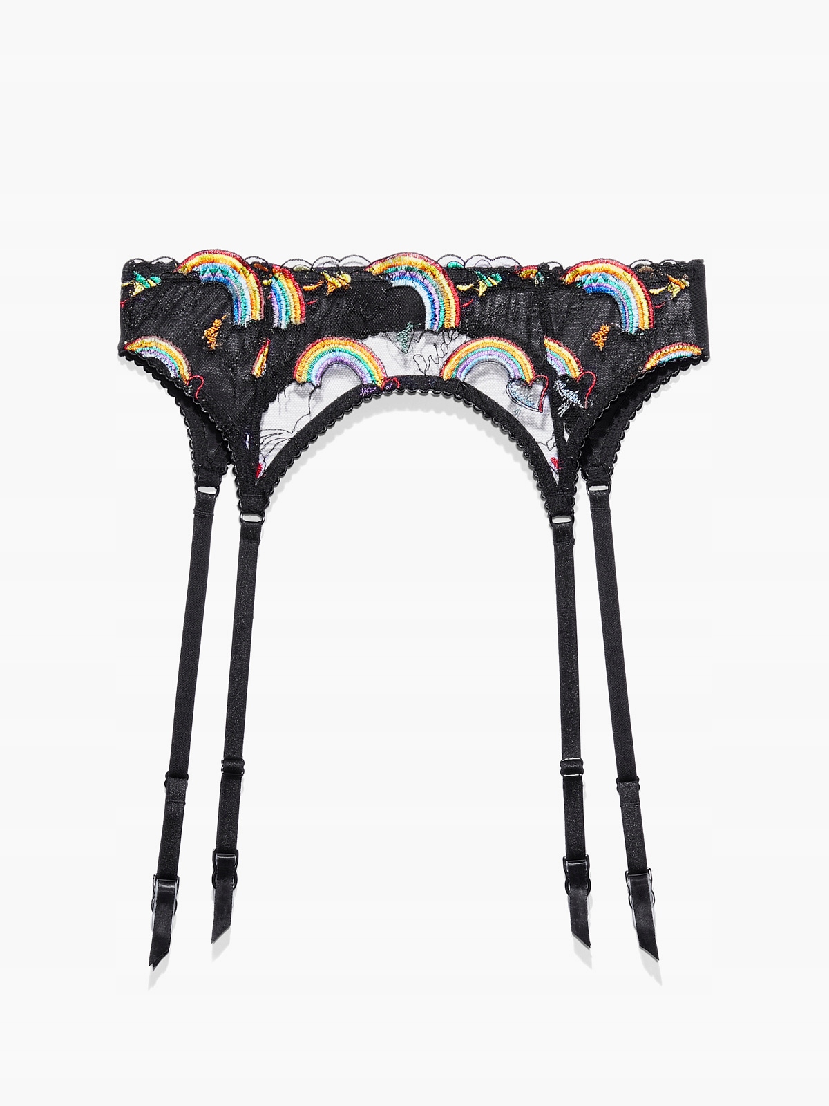 ЧЕРНЫЙ ПОЯС ДЛЯ ПОДВЯЗОК SAVAGE X FENTY С ВЫШИВКОЙ РАДУГИ L
