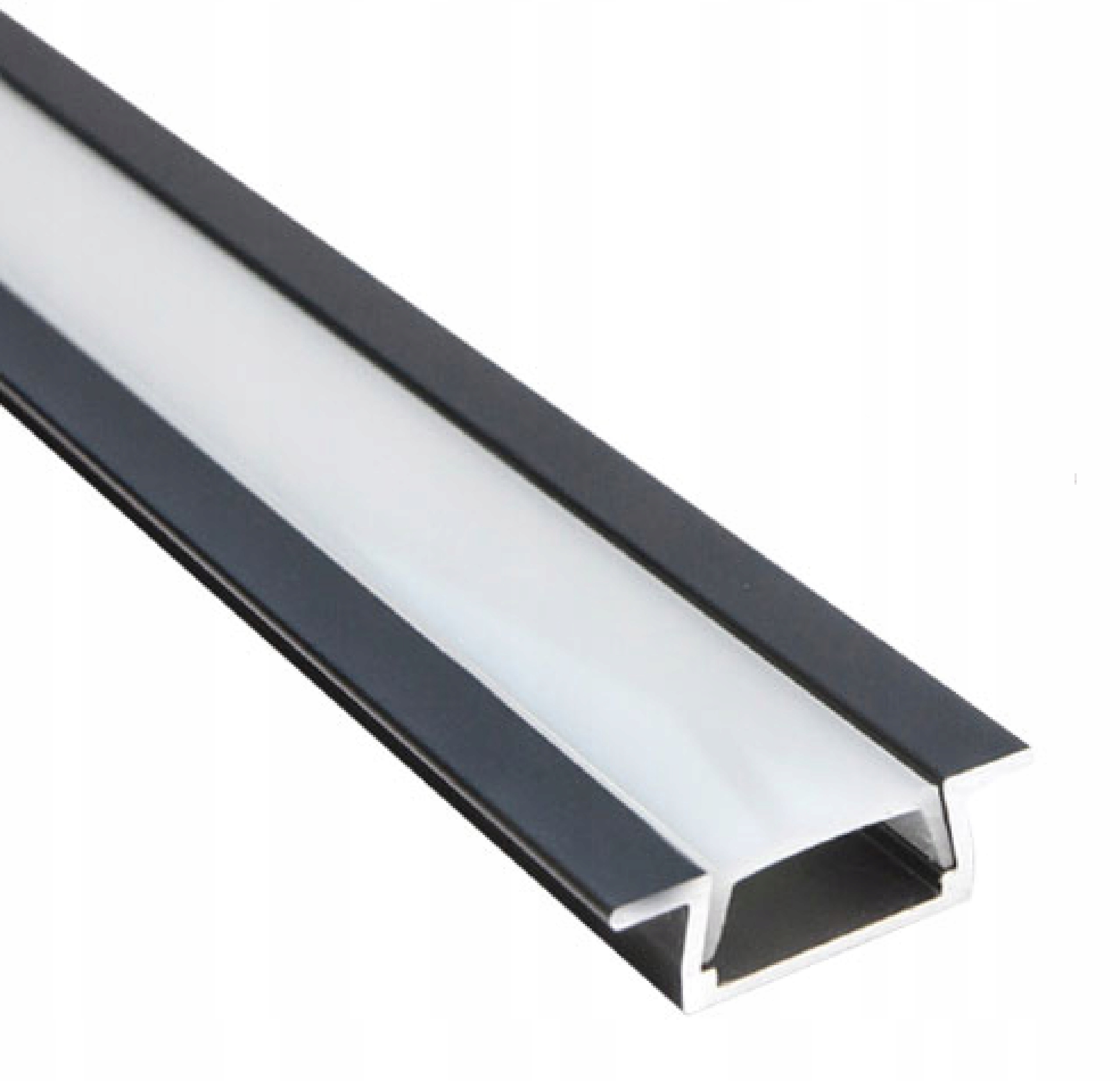 ЧОРНИЙ ПРОФІЛЬ ДЛЯ СВІТЛОДІОДНОЇ СТРІЧКИ, врізний, алюміній, 1м, врізний, скло, абажур