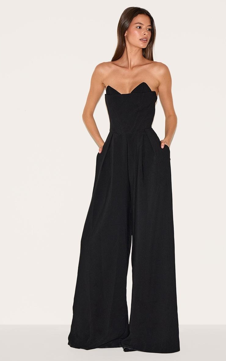 ЧЕРНЫЙ ШИРОКИЙ КОМБИНЕЗОН PRETTYLITTLETHING 40