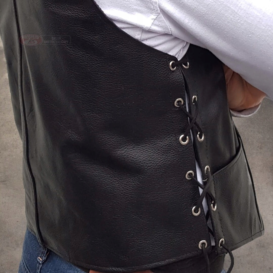 Black Leather Motorcycle Vest - s