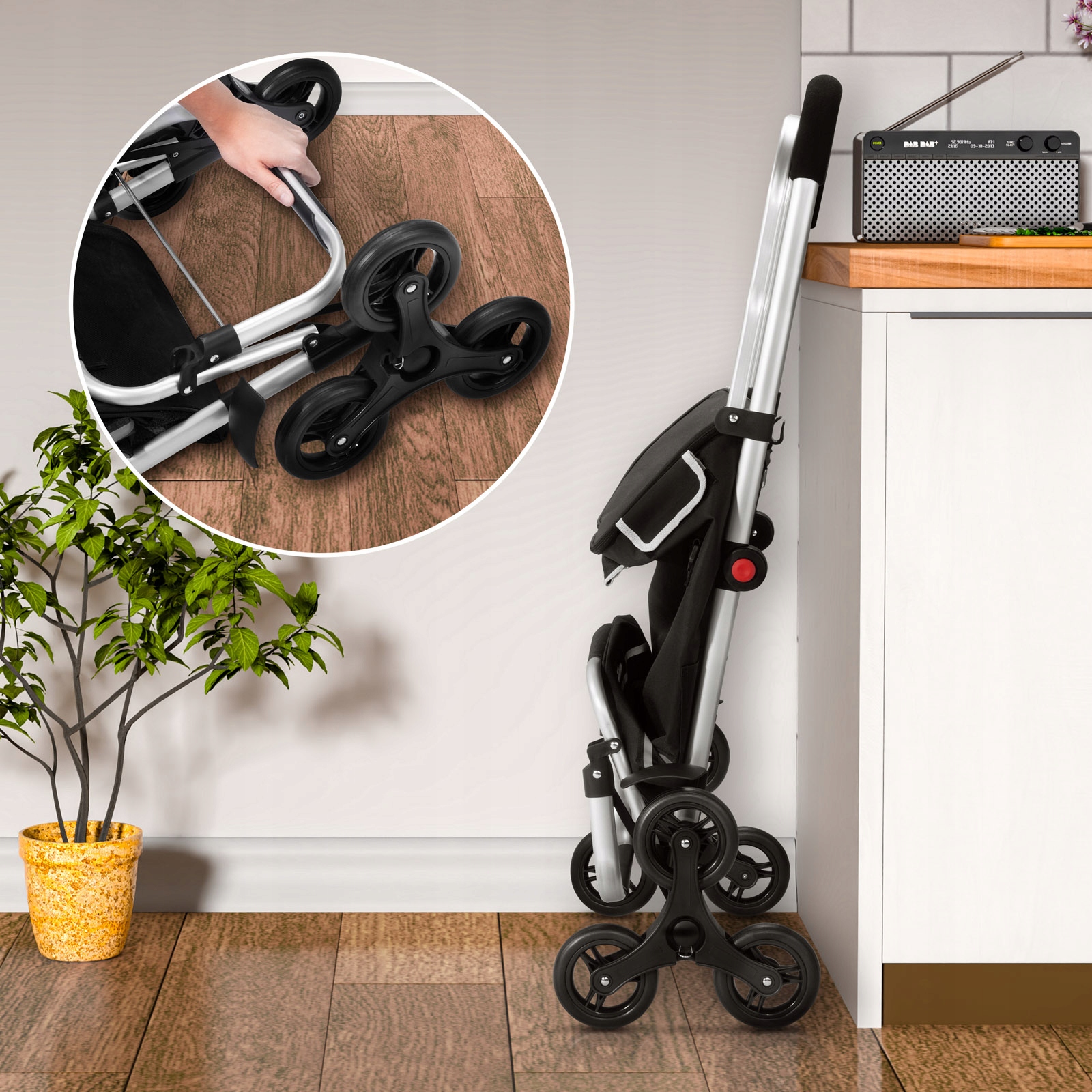 Большие 3 колеса с высококачественными шарикоподшипниками и прочным стальным сердечником обеспечивают легкое маневрирование по лестнице.