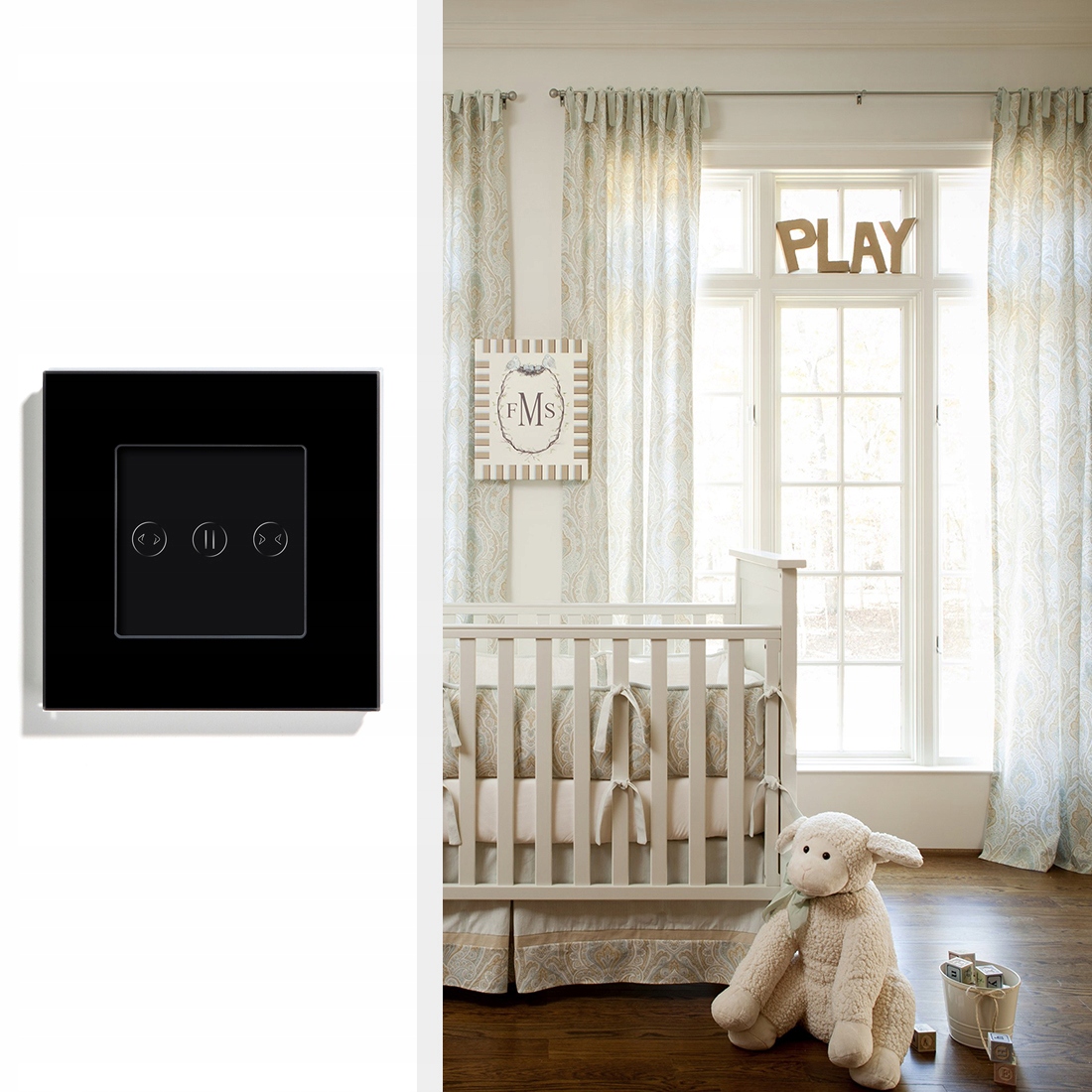 - Управление рулонными шторами со стеклянной сенсорной панелью