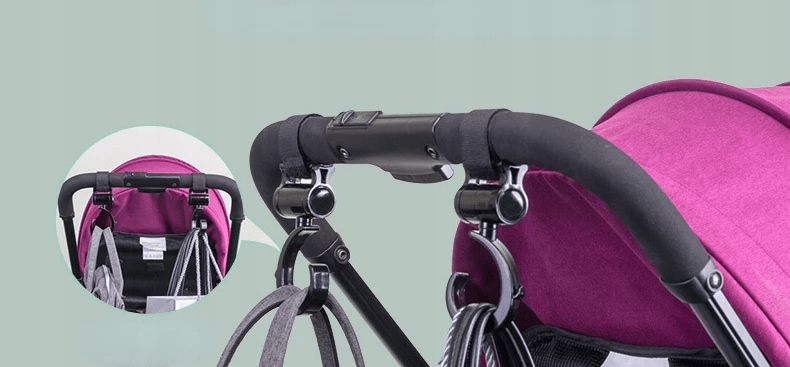 - Двойной крючок позволяет носить с собой сумочку или сумку для подгузников.