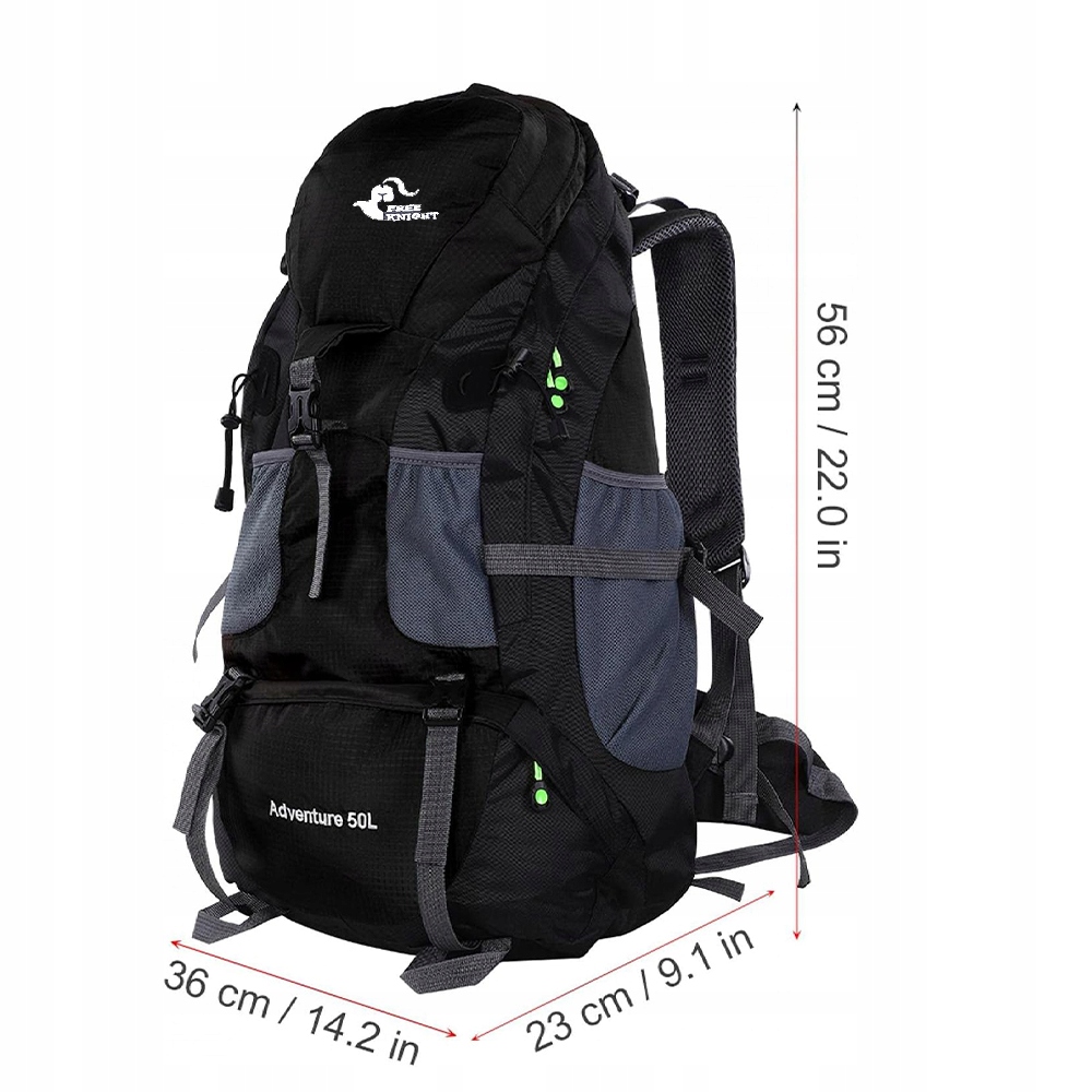 ЧОРНИЙ ВОДОНЕПРОХОДНИЙ ГІРСЬКИЙ РЮКЗАК ДЛЯ ПОХОДІВ І ВИЖИВАННЯ СПОРТУ 50 л