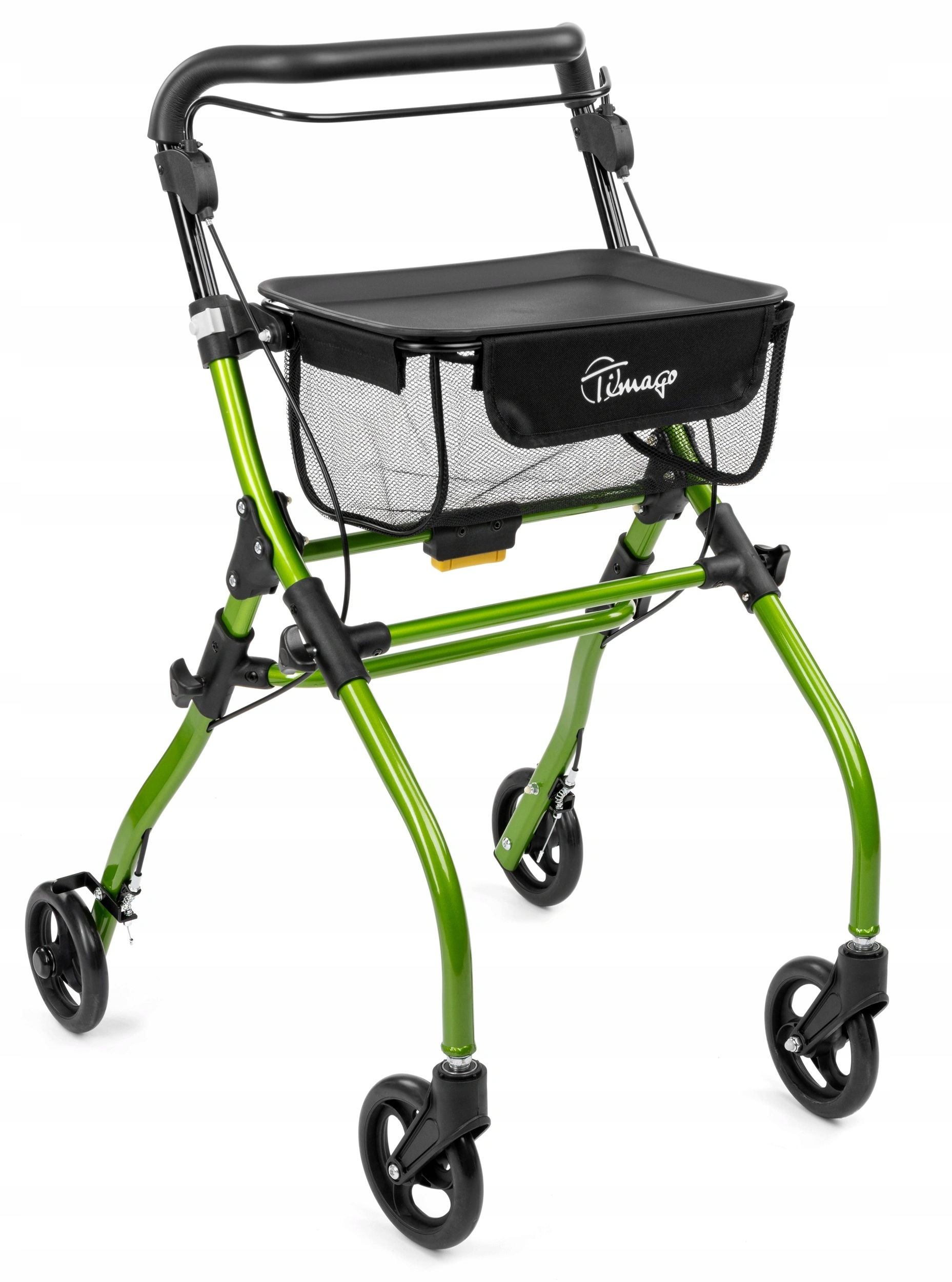 Четырехнутая поддержка от бренда Timago -это вспомогательное оборудование, предназначенное для людей с пониженной физической эффективностью, которая нуждается в стабильной поддержке и страховании во время переезда. Часто также выбирается пожилыми людьми. Оснащен практическим сумкой, тормозами, спинкой и регулировкой высоты. Конструкция поддержки сложена, что облегчает хранение и транспорт. Максимальная нагрузка составляет 115 кг.