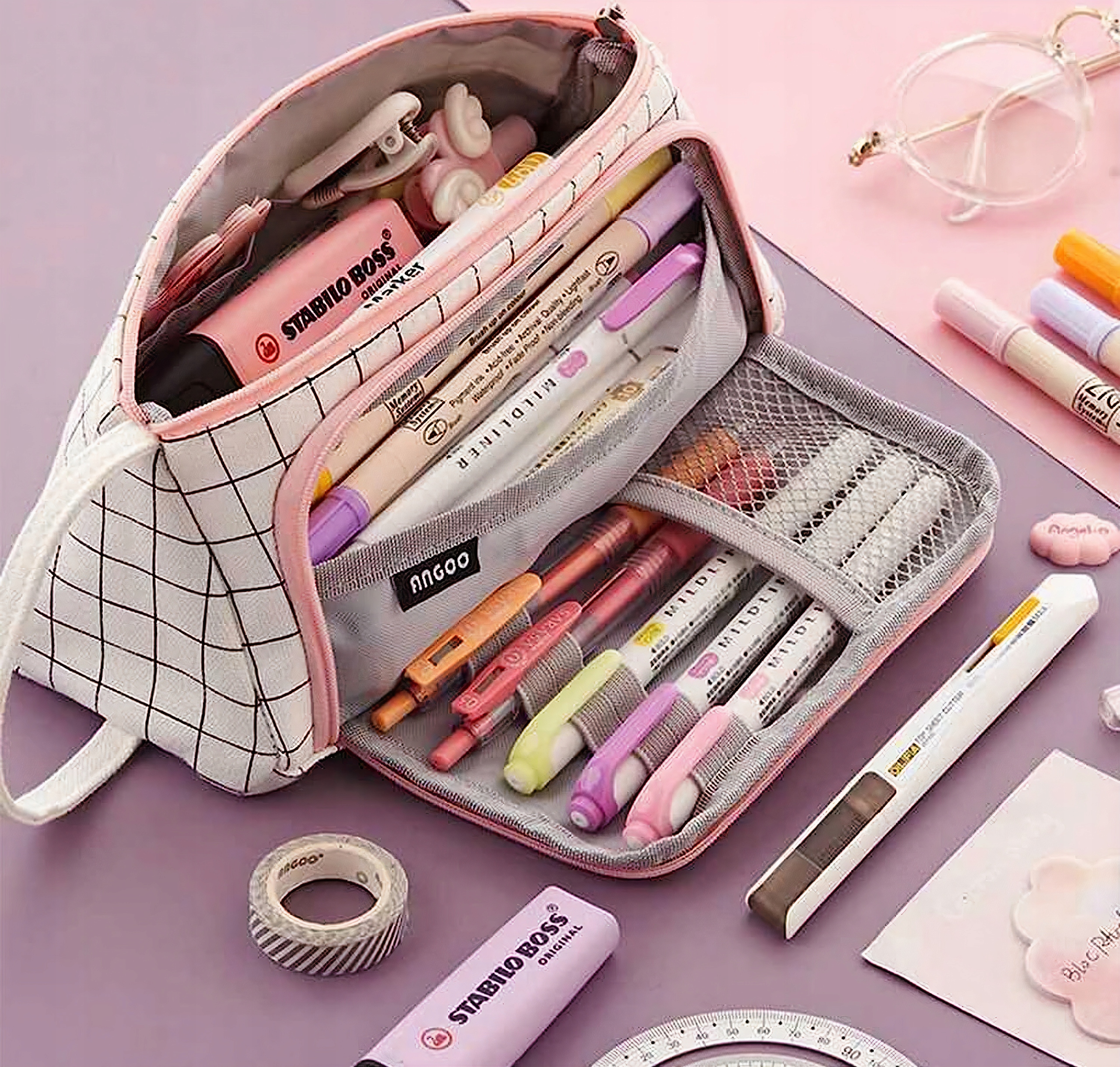 ✅ Просторное отделение с четырьмя отделениями: Большое место для хранения: вмещает до 100 карандашей, ручек, стикеров, ластиков, точилок, калькулятора и больше школьных гаджетов.