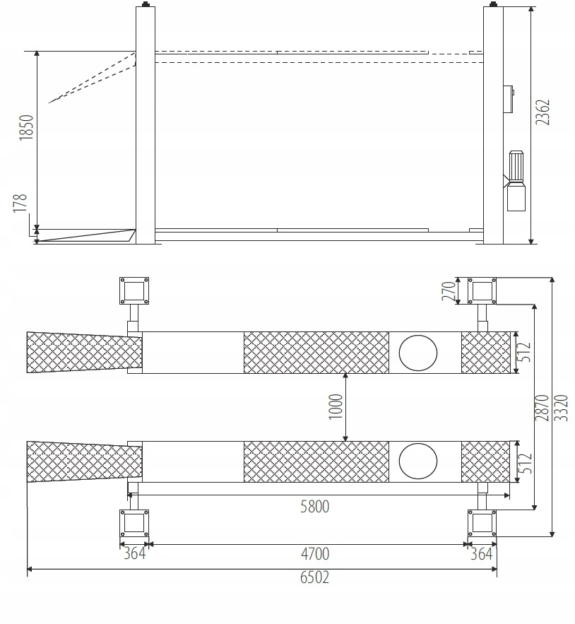 Чотирьохстійковий підйомник 6.4T для геометрії PO640