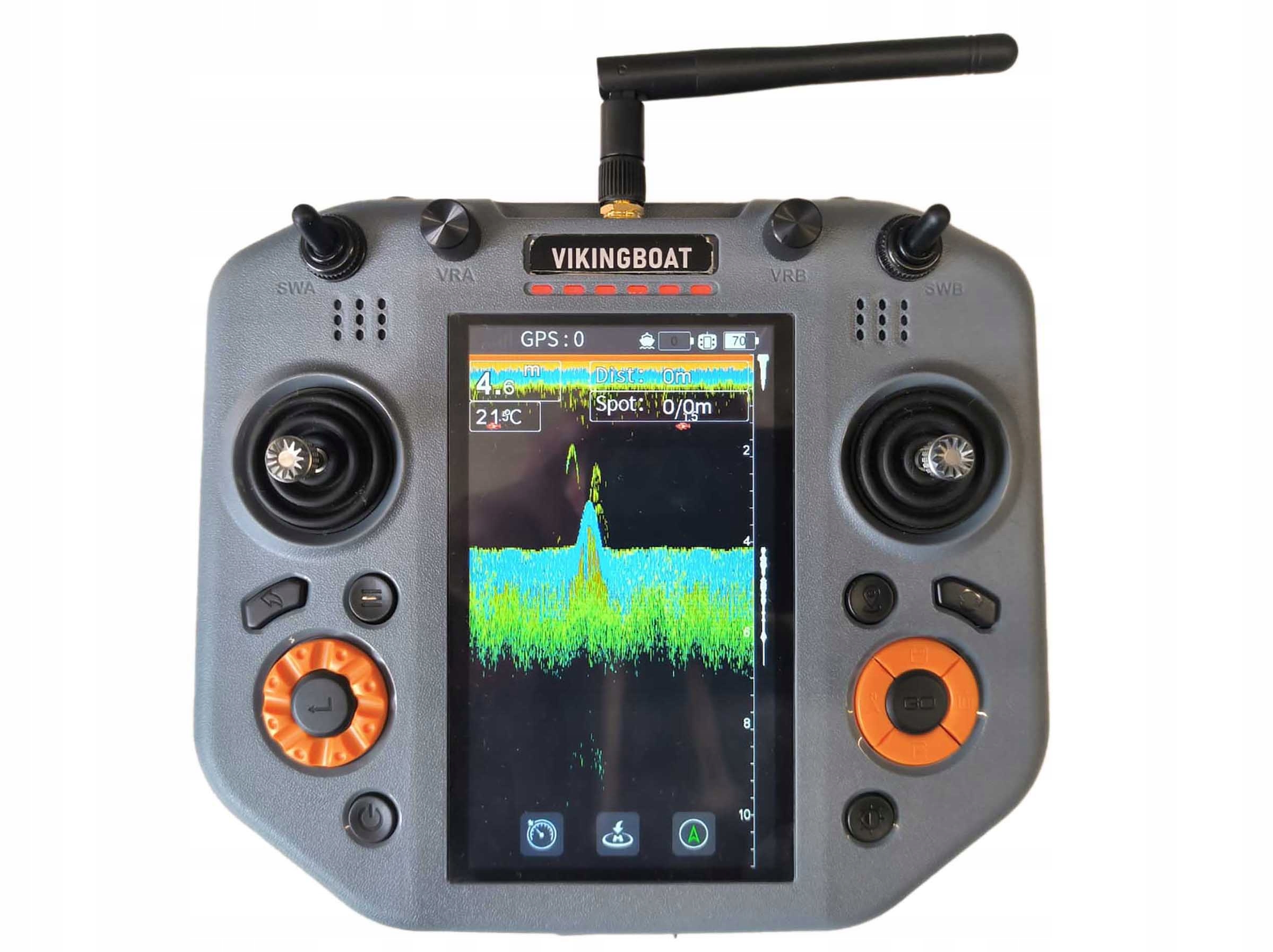 - Цветной эхолот в пульте (срабатывает от 0,7 м) с возможностью дальности зондирования