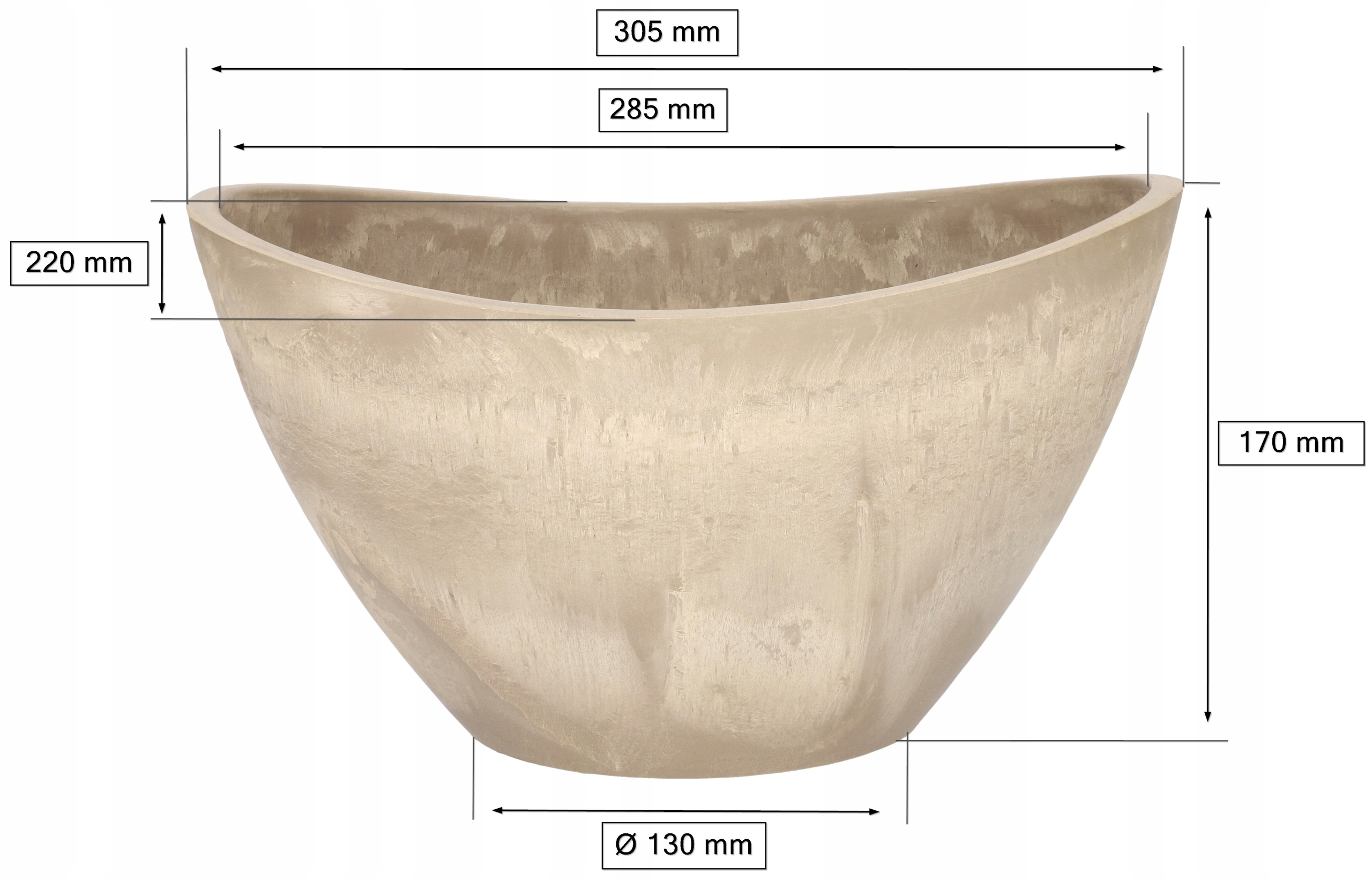 - Таков состав нашего композитного горшка в форме лодочки: 60% пластика + 30% каменной пыли + 10% древесной пыли.