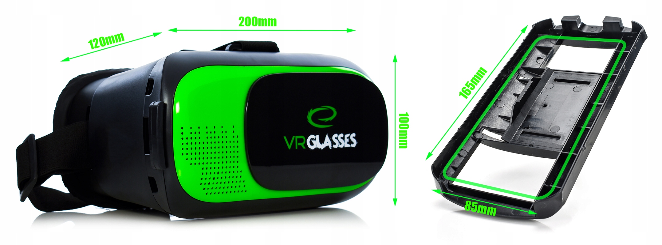 Максимальный размер устройства, которое поместится в очках, — 165x85 мм.