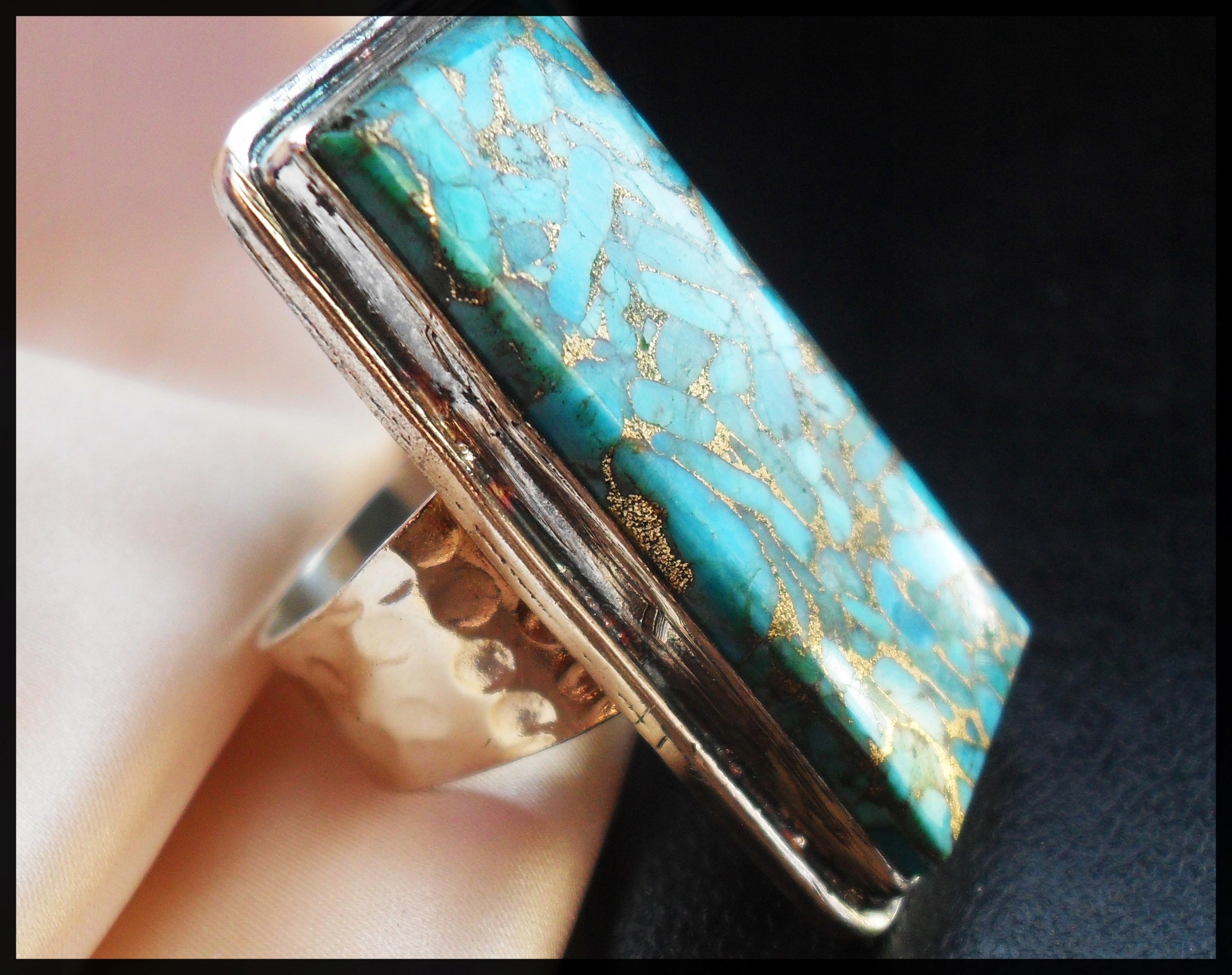 Великолепное кольцо с натуральной бирюзой из Мексики редко