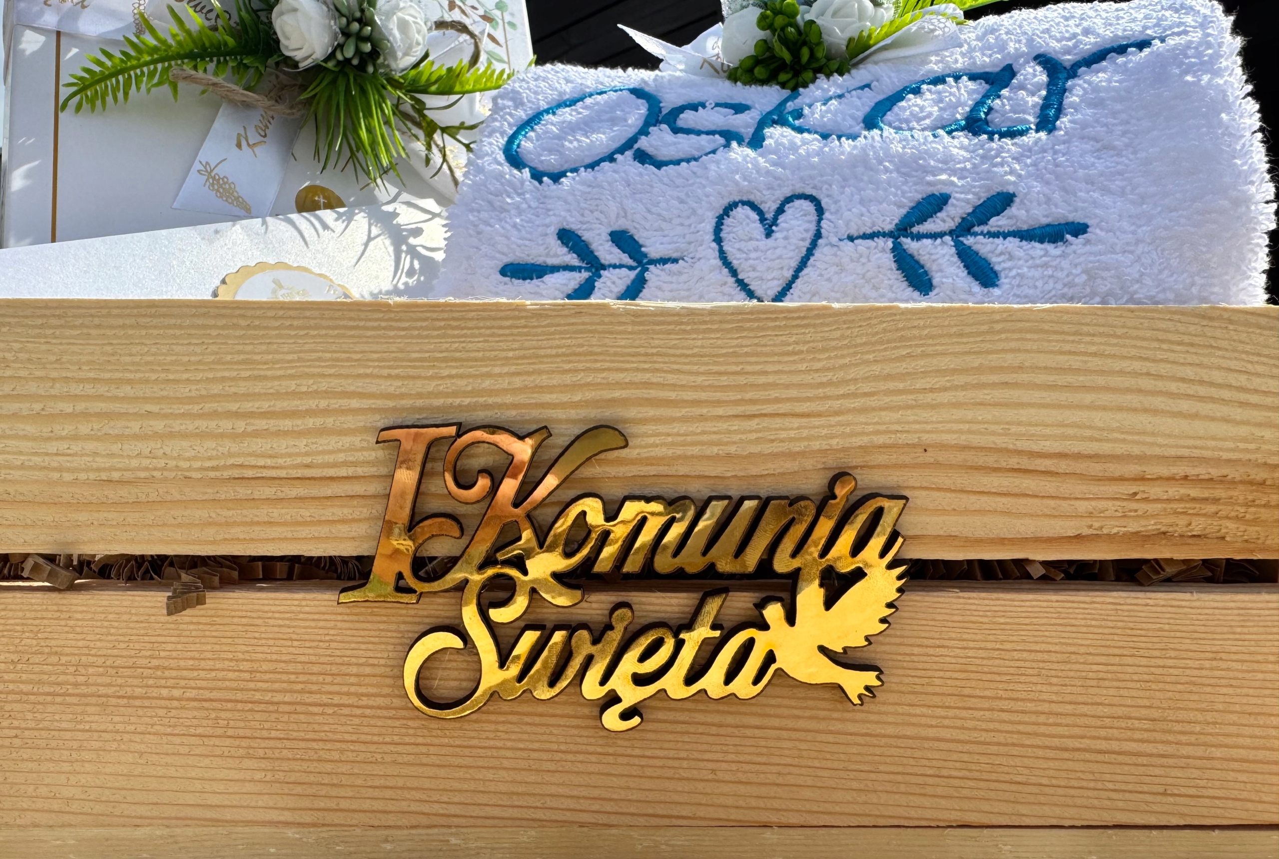 - упаковка - деревянная коробочка с надписью «Первое Святое Причастие»,