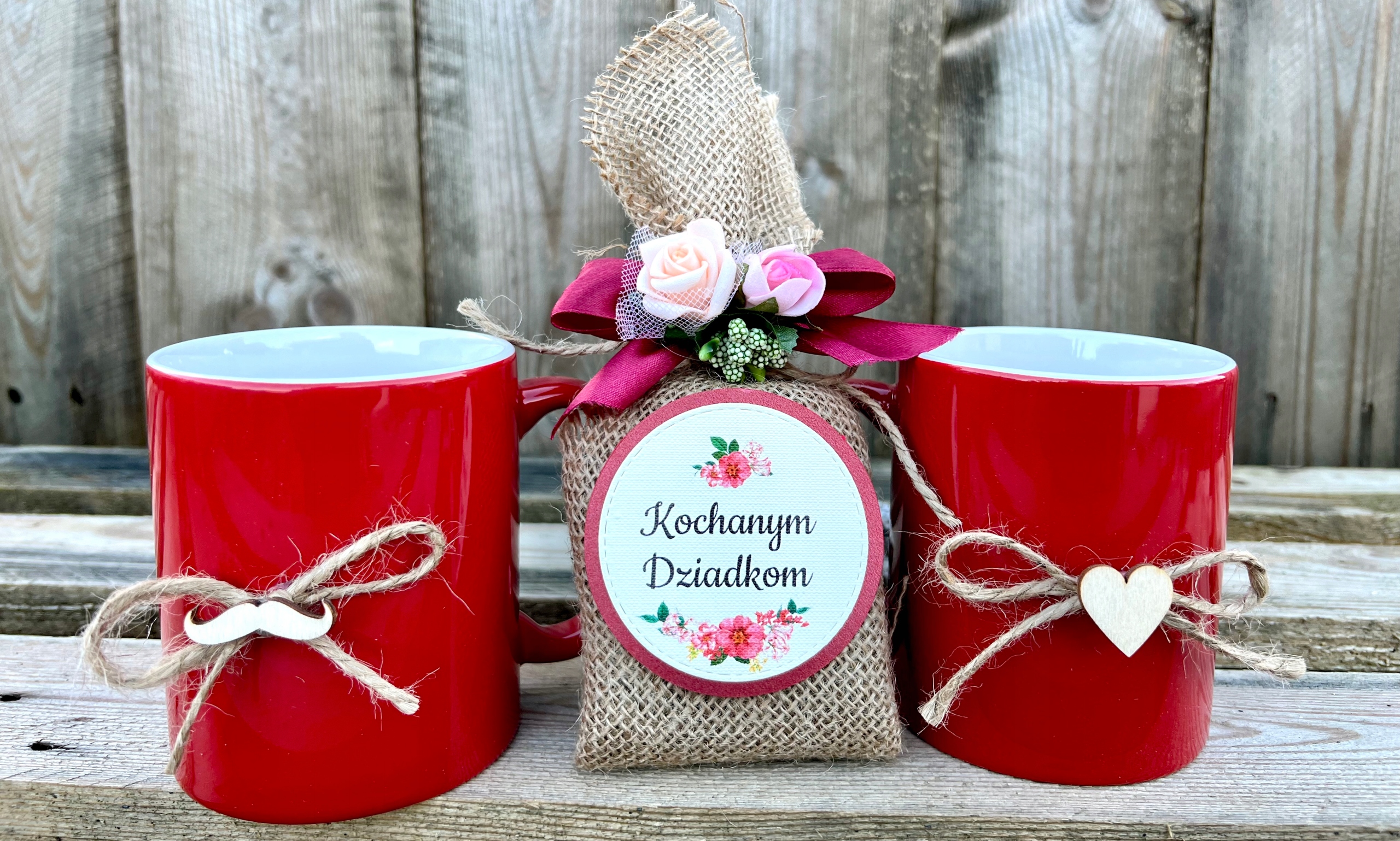 - красивый набор из 2 кружек темно-красного цветас натуральным декором, 330 мл,
