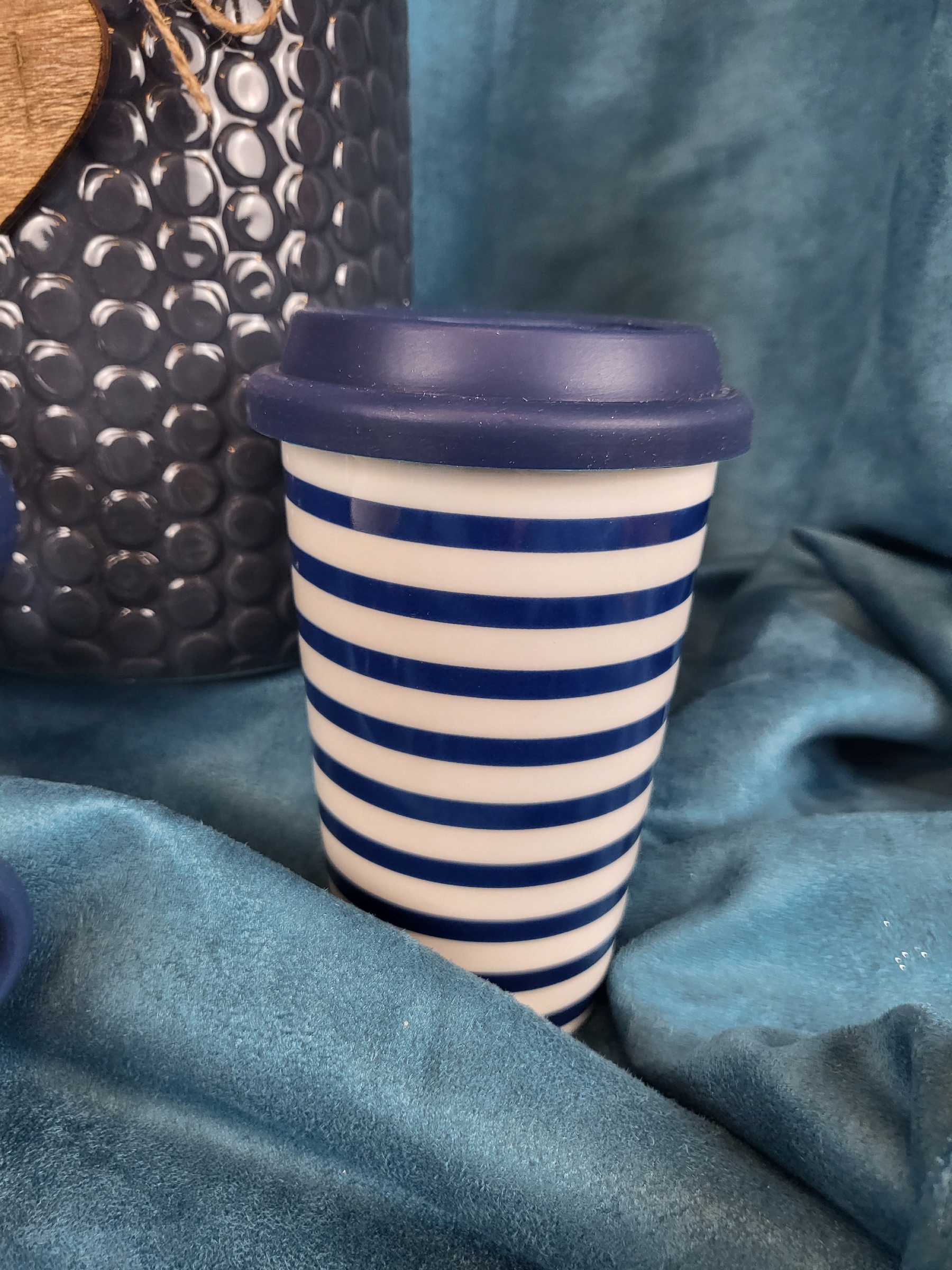 Тепловая кружка с силиконовой крышкой, которая принадлежит коллекции «сегодня», похожа на морской стиль.