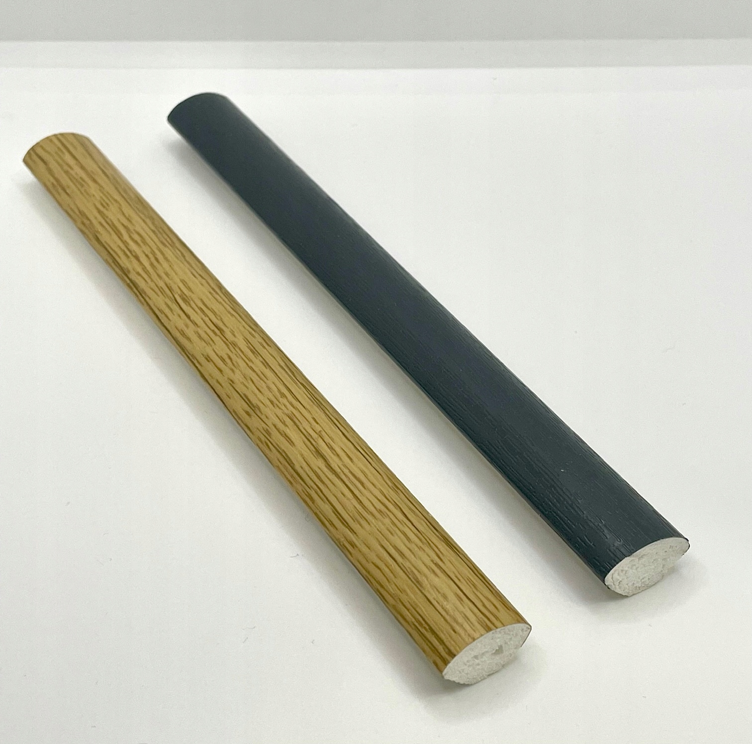 Четвертькруглая для маскировки пространств и зазоров, образующихся после установки дверей, окон, подоконников или столешниц. Доступен в цветах, типичных для столярных изделий. Отделан внешней декоративной пленкой, устойчивой к ультрафиолету и погодным условиям, поэтому его можно использовать и на открытом воздухе.