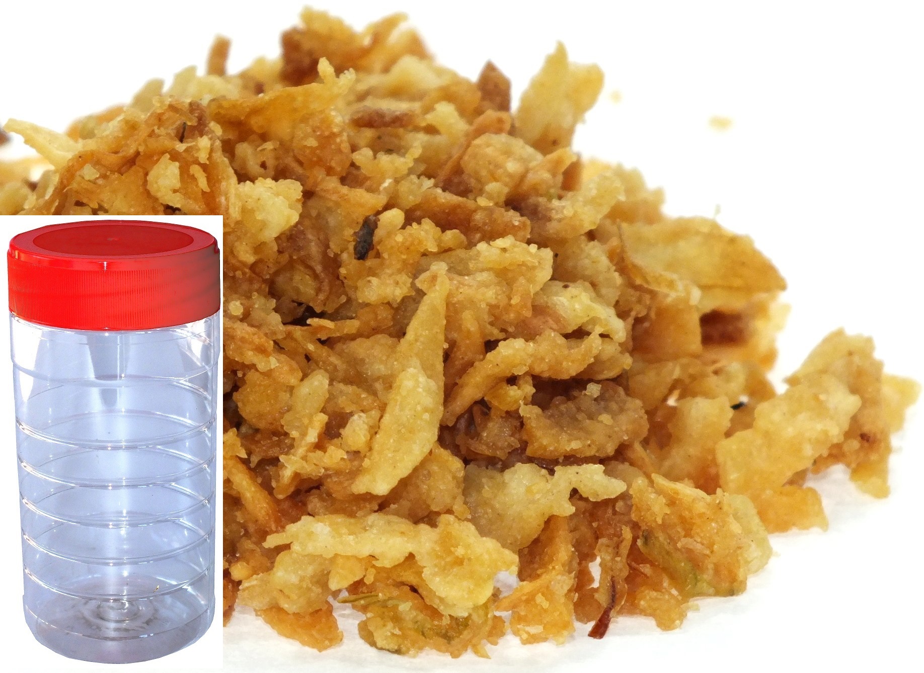 Это продукт ЭКСТРА, т.е. слабосоленый и изготовленный из более качественного сырья, чем обычный жареный лук. Он хрустящий и вкусный. В основном используется для гастрономии, хлебобулочных изделий, деликатесов и переработки рыбы. Теперь его можно найти и на вашей кухне.