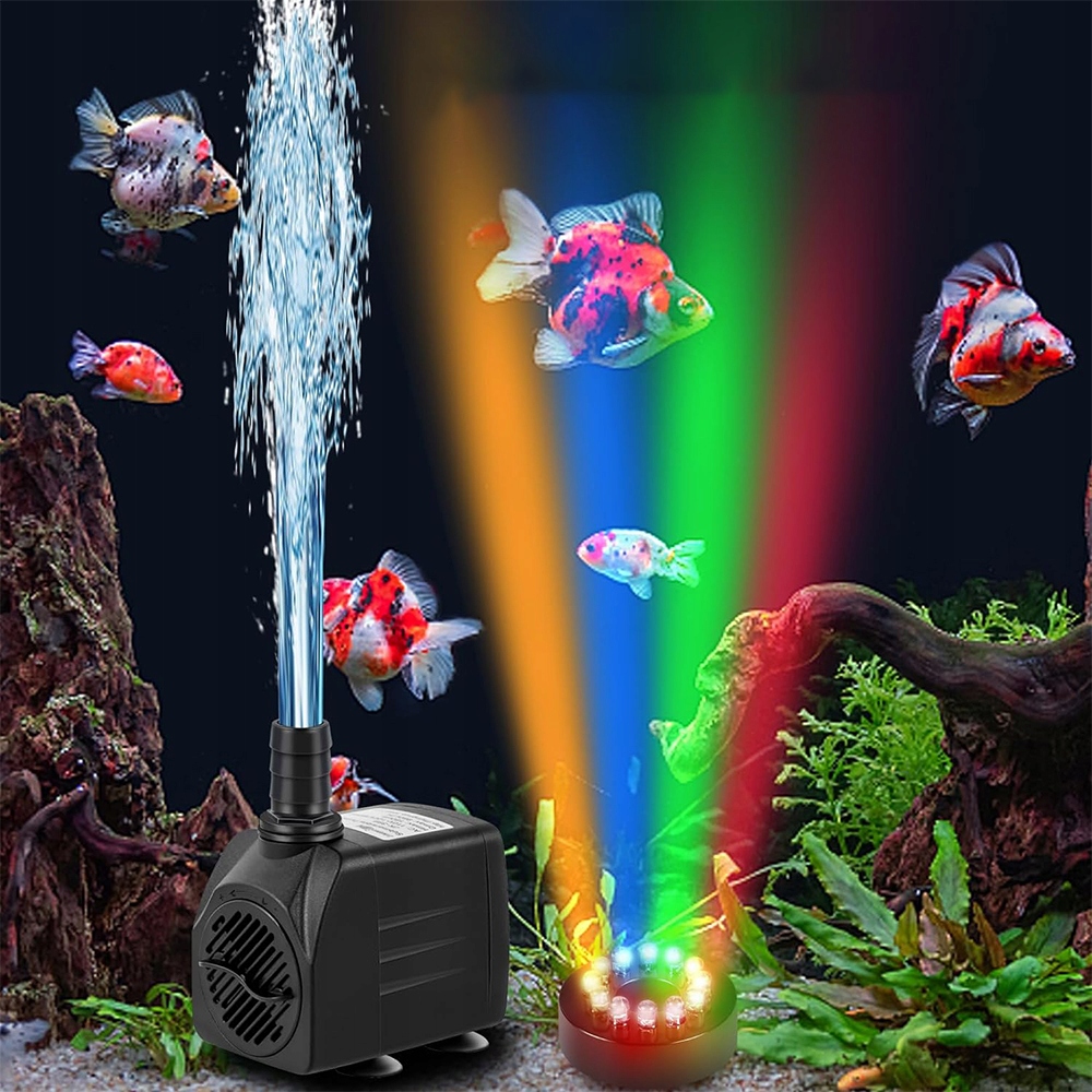 💧💧💧 【12 светодиодов】 Насос фонтана использует 12 цветных светодиодов, доступных в четырех цветах (желтый, зеленый, красный и синий). Мало того, что водонепроницаемый, но и обеспечивает прекрасный эффект, благодаря которому это идеальный выбор для украшения внутренних фонтанов, бассейнов, фонтанов для животных, прудов, аквариумов, аквариумных насосов, гидропоники и статуй. который можно повернуть для регулирования потока воды. Вы можете регулировать поток воды в соответствии с вашими потребностями. Попрощайтесь с традиционным методом одного розетки с постоянным потоком, он очень удобен и прост в использовании.