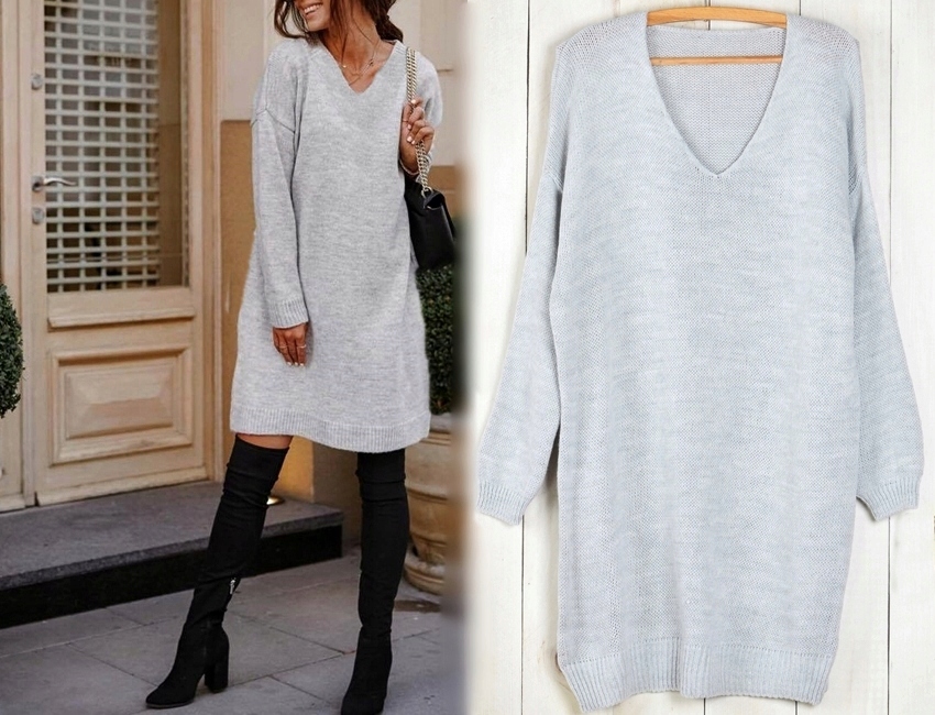 CIEPŁY DŁUŻSZY SWETER TUNIKA SUKIENKA V DEKOLT 494