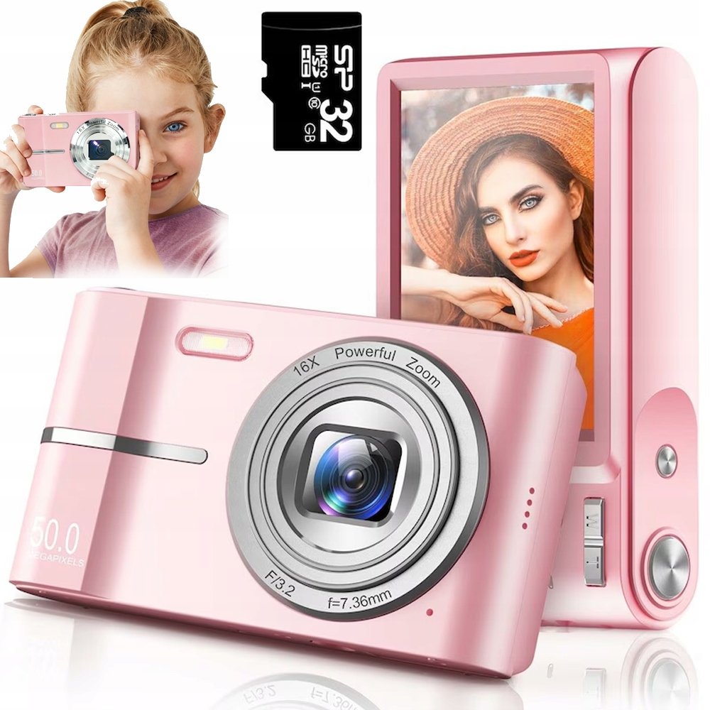 🧩 【Многофункциональная цифровая камера】Цифровая камера имеет множество функций, таких как защита от сотрясений, распознавание лиц, захват улыбки, непрерывная съемка и селфи. Поддерживает быстрые карты памяти TF емкостью до 128 ГБ. Данное устройство содержит карты памяти емкостью 64 ГБ. Не поддерживает карты памяти и карты расширения для детских камер.