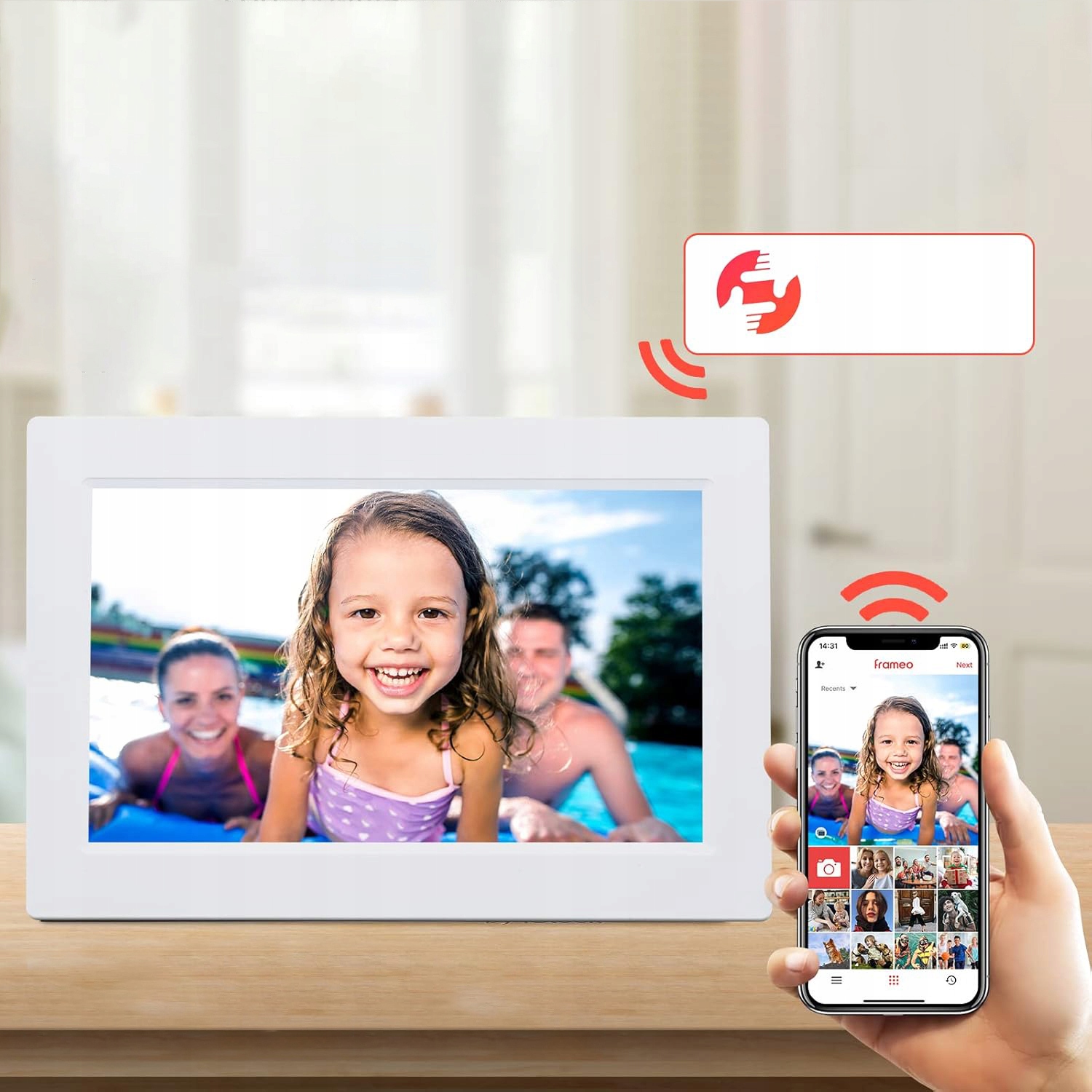 Пригласите неограниченное количество друзей и семьи, чтобы отправить фотографии в ваш кадр или отправить фотографии на свой кадр через Wi-Fi; Подарок для пожилых людей, у которых не очень хорошо со смартфонами, чтобы оставаться в контакте с молодым поколением.