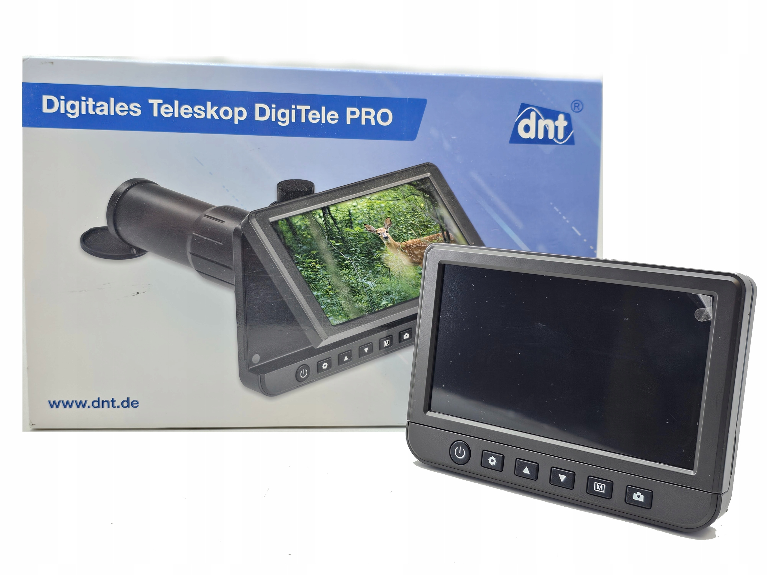 Предлагаем усовершенствованный цифровой телескоп DNT DigiTele Pro, обеспечивающий исключительное качество изображения на 5-дюймовом IPS-экране с разрешением 960х450 пикселей. Благодаря оптическому увеличению до 50× и цифровому зуму он позволяет наблюдать объекты на расстоянии нескольких сотен метров, дополнен контролем экспозиции и возможностью записи фотографий.