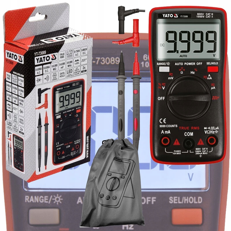 Универсальный счетчик YT-73089 с истинной среднеквадратичной функцией и с автоматическим диапазоном для каждого измерения. Это обеспечивает основные и расширенные электрические измерения. Популярное жилье, небольшие размеры и большой освещенный дисплей представляют собой комбинацию высокой мобильности с удобством работы. Скорость, точность и повторение указаний, мультиметр обязан современному контролю управляющей платы и высококачественным измерениями, размер и точность которого будут оценены как хобби, так и техническими специалистами профессионального обслуживания. Прямоугольный генератор сигналов волн поможет, например, в диагностике наушников или динамиков, а специальная настройка для измерения тока в микроампере позволит вам проверить различные типы датчиков, например, датчики пламени в устройствах HVAC.