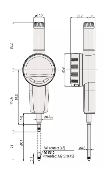 - Измерительный наконечник: шарик со спеченным твердосплавный сплав, резьба: M2,5x0,45