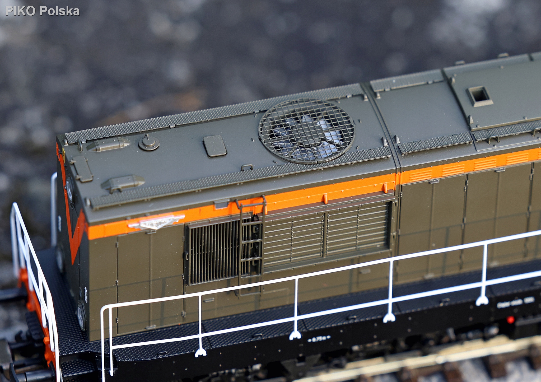 Новую конструкцию отличает также вращающийся вентилятор, прекрасно воспроизведенные тележки и филигранные металлические поручни. Технически модель соответствует проверенной линейке продуктов PIKO: центрально расположенный двигатель с двумя маховиками приводит в движение внешние колесные пары обеих тележек через карданные валы.