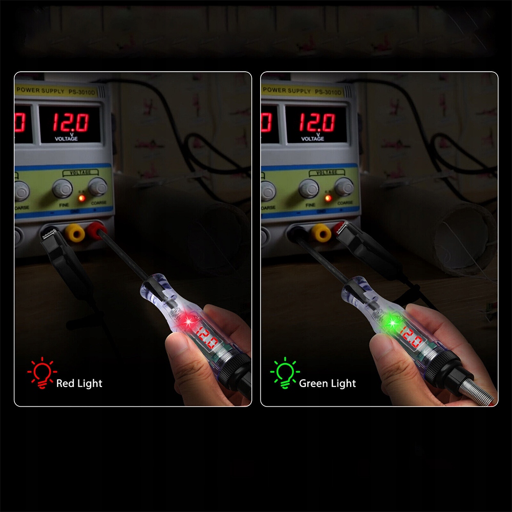 - ✔️【Широкое применение】: Диапазон измерения постоянного тока этого тестера напряжения составляет 6 В/12 В/24 В. , идеально подходит для проверки автомобильных фар, задних фонарей, цепей указателей поворота, поврежденных розеток, соединений предохранителей и других цепей.