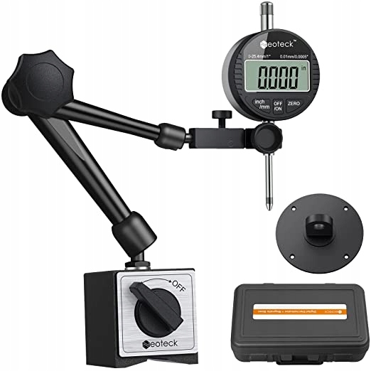 В комплект входит 1 цифровой циферблатный индикатор, 1 магнитное основание, 1 футляр для хранения. База индикаторов совместима со всеми большинством цифровых циферблатов/индикаторов и других рыночных индикаторов.