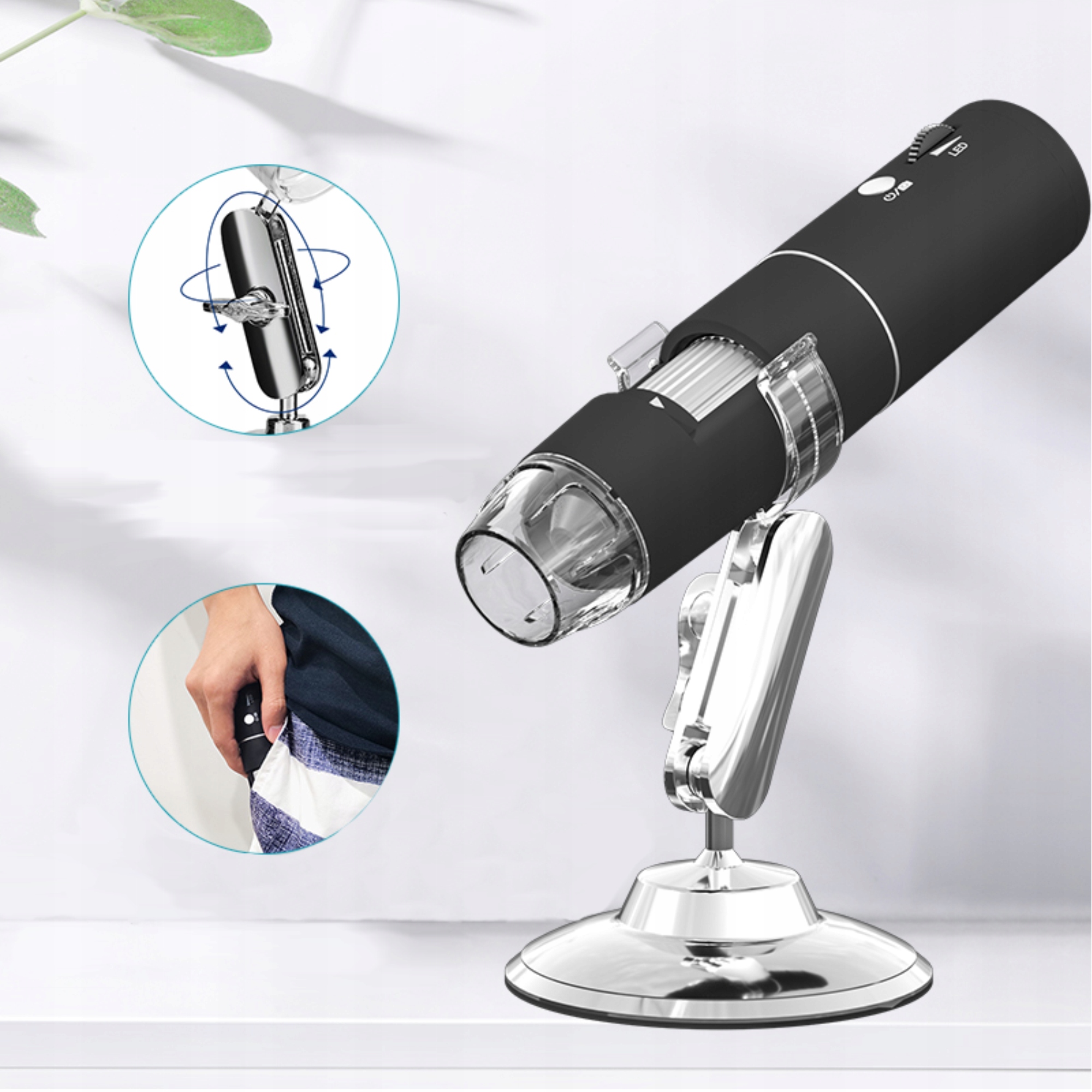 Микроскоп создан для того, чтобы выполнять свою роль в как можно большем количестве ситуаций. Когда вам это понадобится, он может стоять на устойчивом штативе. Имеет вращающуюся на 360° головку. В противном случае наблюдение за микромиром с помощью микроскопа может быть лучшим вариантом.