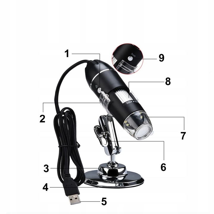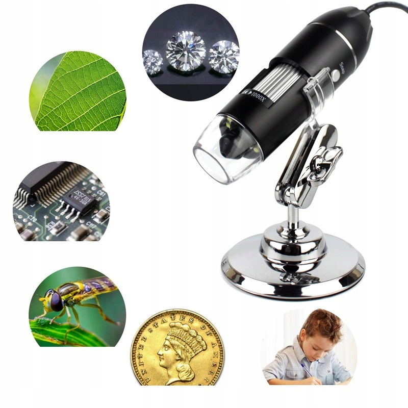 Цифровой USB -микроскоп с светодиодной подсветкой позволяет отображать изображение, просмотренное на экране телефона или компьютера, в высоком качестве. работает как камера - изображение отправляется в прямом эфире - в реальном времени - обеспечивает непрерывное представление о поле наблюдения и возможность регистрировать фотографии или видео . Он оснащен фоточувствительной матрицей с разрешением 2 мега -пикселей.