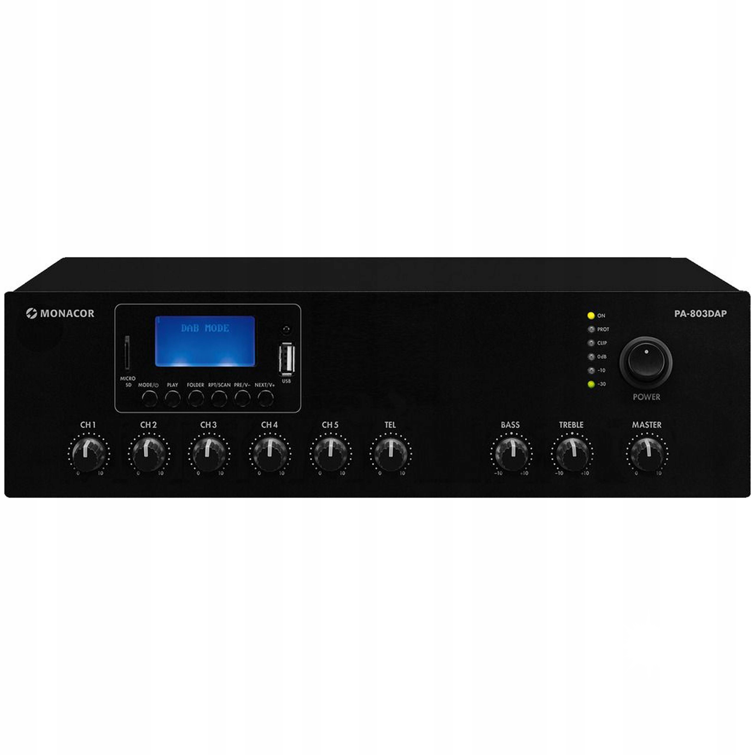 ЦИФРОВОЙ СМЕШИВАЮЩИЙ УСИЛИТЕЛЬ MONACOR PA-803DAP | ФАНТОМ 48В | MP3 | ДАБ+ |
