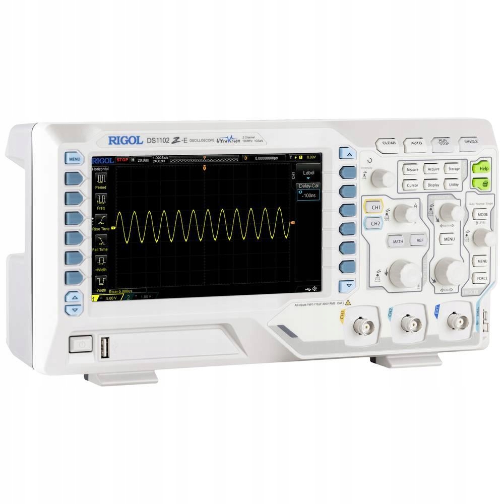 Модель DS1102Z-E — 2 -Цифровой осциллограф канала 100 МГц с частотой дискретизации 1 Гвыб/с и уникальными функциями, такими как сверхбольшая глубина памяти - 14 миллионов точек. А также встроенные триггеры последовательной шины и декодирование SPI, I2C, RS232, 7-дюймовый цветной дисплей для оптимального отображения сигналов измерения. Интерфейсы LAN, USB и AUX являются стандартными, как и многие математические функции.