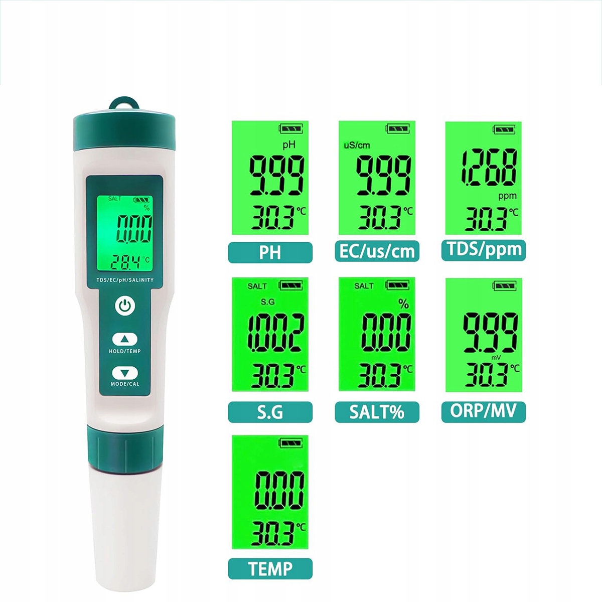 7 в 1 PH/TDS/SALT/ORP/S.G/TEMP/EC-метр с ACT, TDS-метр для питьевой воды, аквариумов, гидропоники, соленой воды, СПА, пивоварения