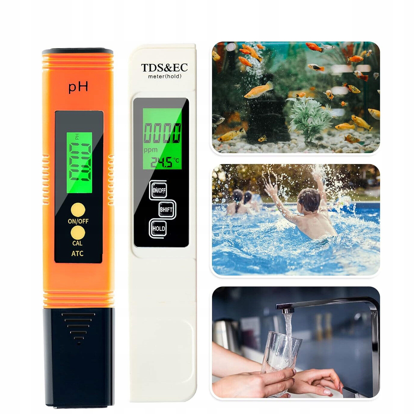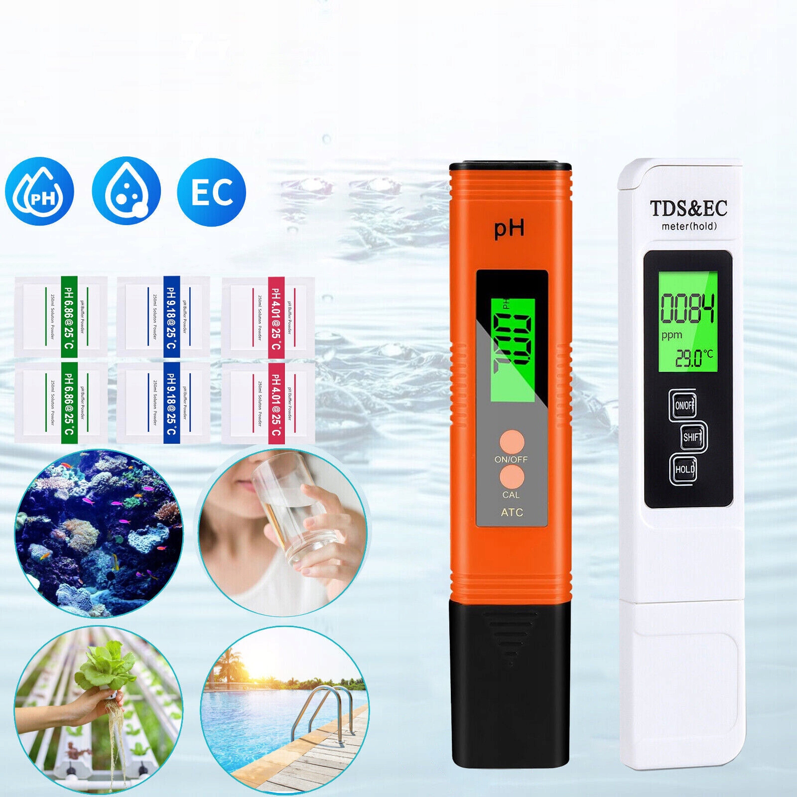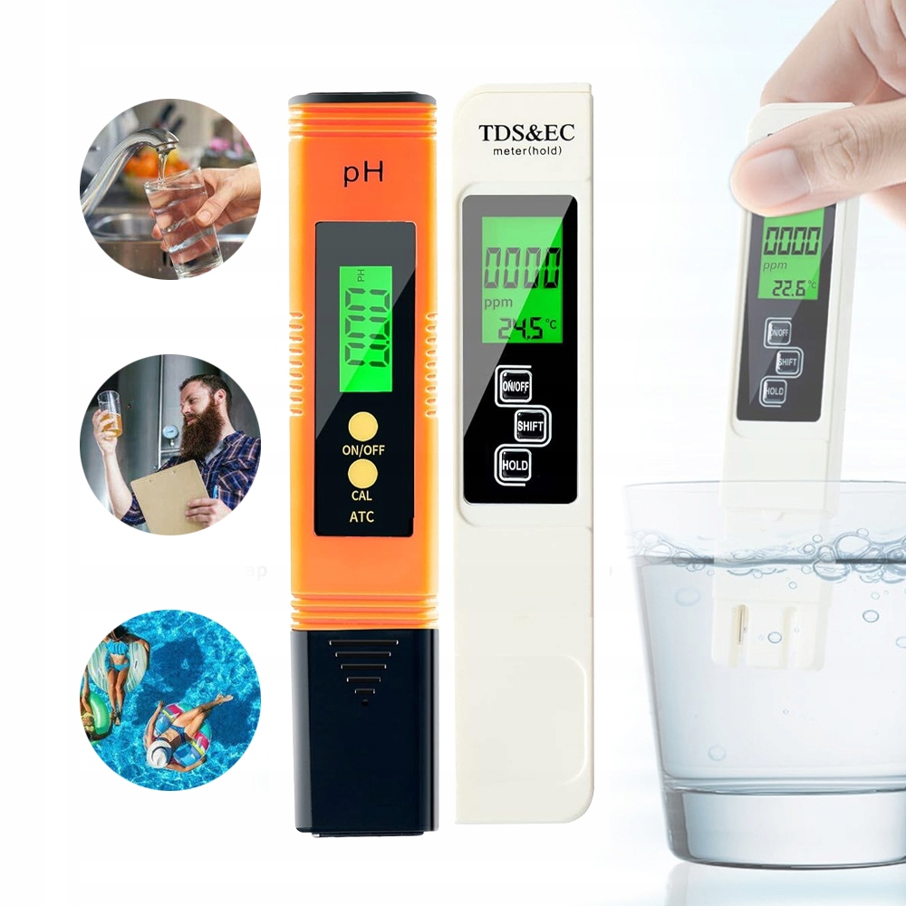 Профессиональные измерители pH, общего содержания растворенных веществ (TDS), электропроводности (EC), температуры и содержания минералов. Просто погрузите PH-метр и тестер TDS и EC в раствор всего на несколько секунд, чтобы быстро и точно определить качество воды.