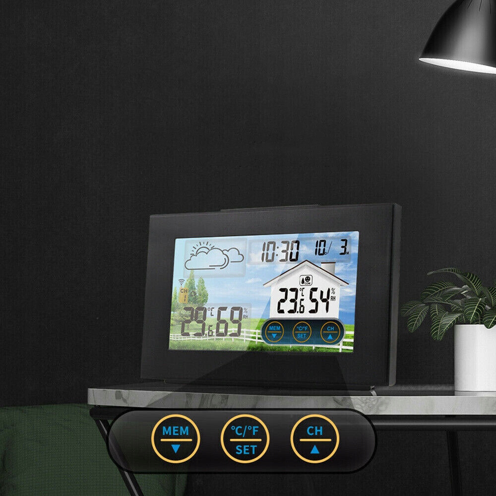 🌤️🌤️ Большой экран с сенсорными кнопками: Высококачественный большой ЖК-экран с подсветкой, легко читаемые данные . Более простое и интеллектуальное управление, которое своевременно отображает самые последние данные о температуре внутри и снаружи помещения, а также влажности воздуха.