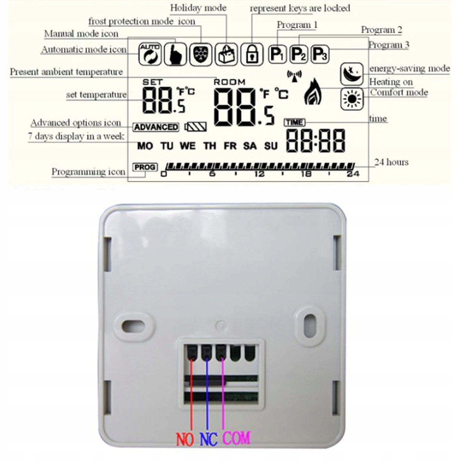 1, основная функция: максимальный диапазон регулятора температуры этого термостата составляет от 1 до 40 ℃, а начальная и конечная температура может быть установлена для управления нагревательными устройствами. 2, Подходящие устройства: этот термостат можно использовать для регулировки температуры настенного котла и газового котла. 3, Технология управления микрокомпьютерами: по сравнению с установленной температурой, запуска и отключения устройств для нагрева контролируется реле для достижения постоянной температуры и энергии экономии. 4, ЖК -дисплей: оснащен большим ЖК -дисплеем, вы можете легко увидеть и контролировать рабочие индикаторы термостата. 5, небольшой размер: этот термостат маленький, прост в установке, красиво и просторно и дополнит вашу мебель.