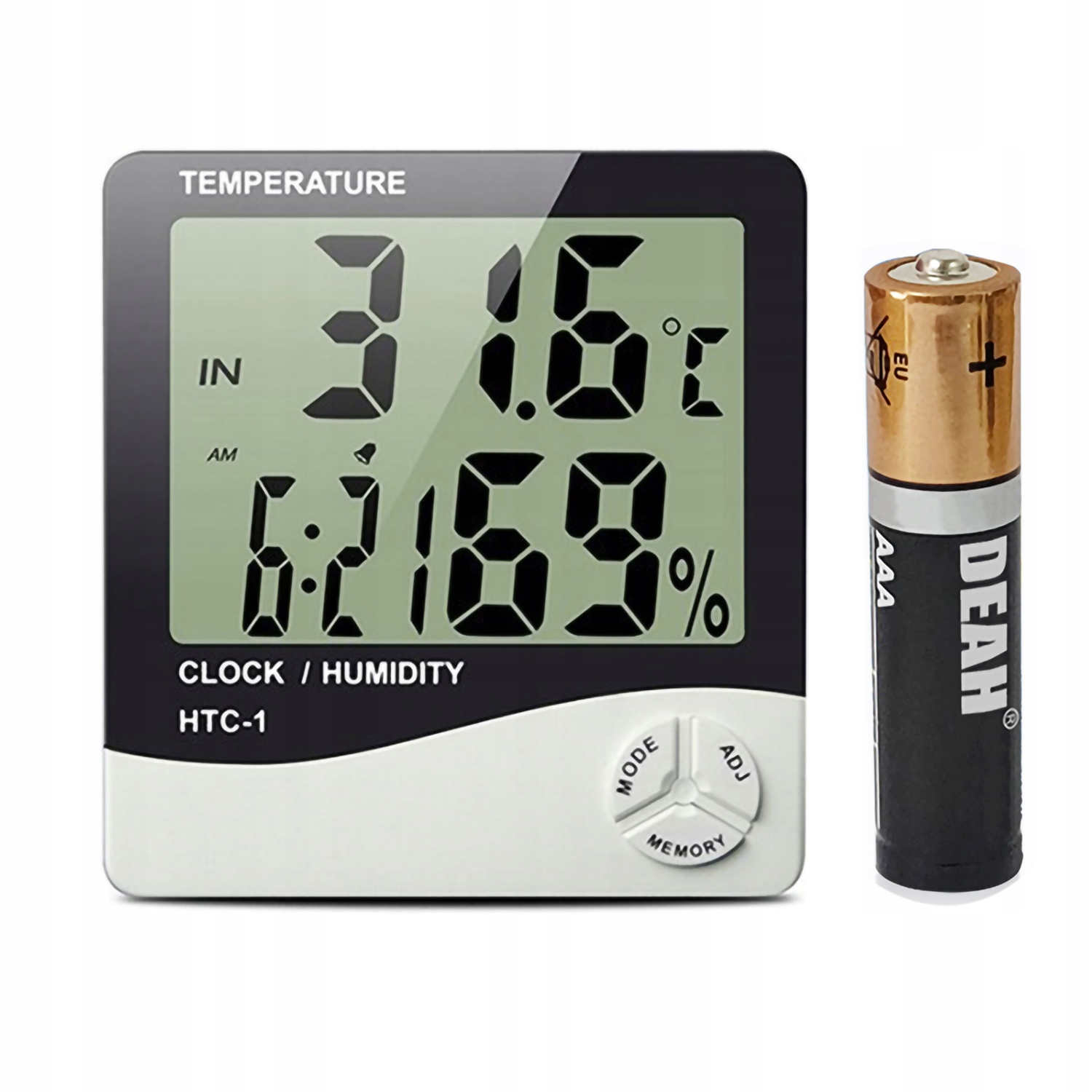 Это многофункциональное устройство для измерения температуры, влажности и b>время, дата и время с ЖК-дисплеем, позволяющим четко считывать отображаемые значения, имеет функция памяти , имеет встроенный будильник и режим календаря.