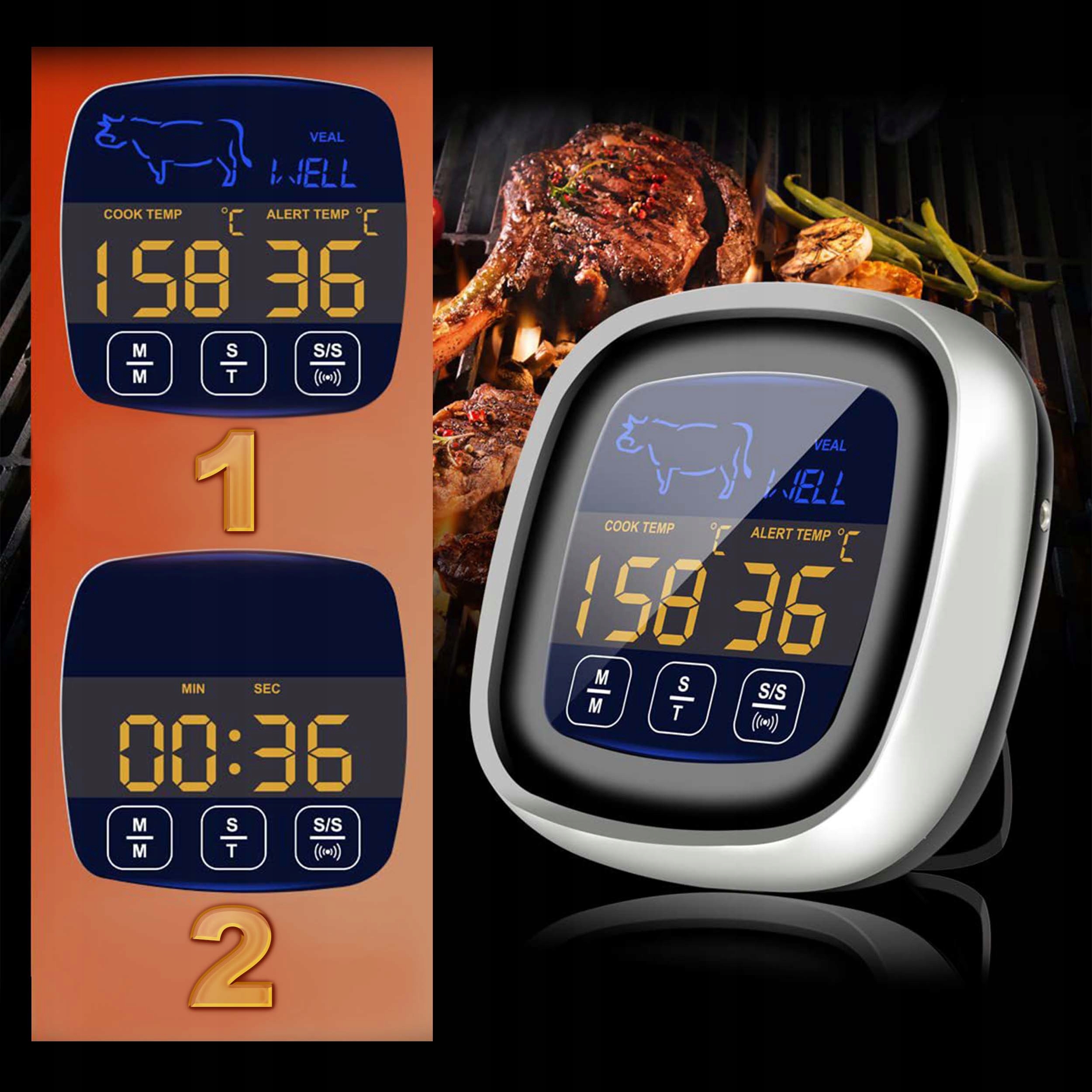 ✅ КУХОННЫЙ ТЕРМОМЕТР 2 в 1 С ЗОНДОМ + ЦИФРОВОЙ ТАЙМЕР