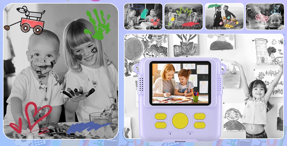 - Раскройте творческий потенциал своих детей с помощью нашей мгновенной камеры, в которой используется передовая технология печати на термобумаге.