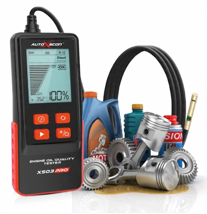 Тестер моторного масла AUTOXSCAN X503PRO с цифровым дисплеем для автоматической проверки масла в бензиновых и дизельных двигателях.